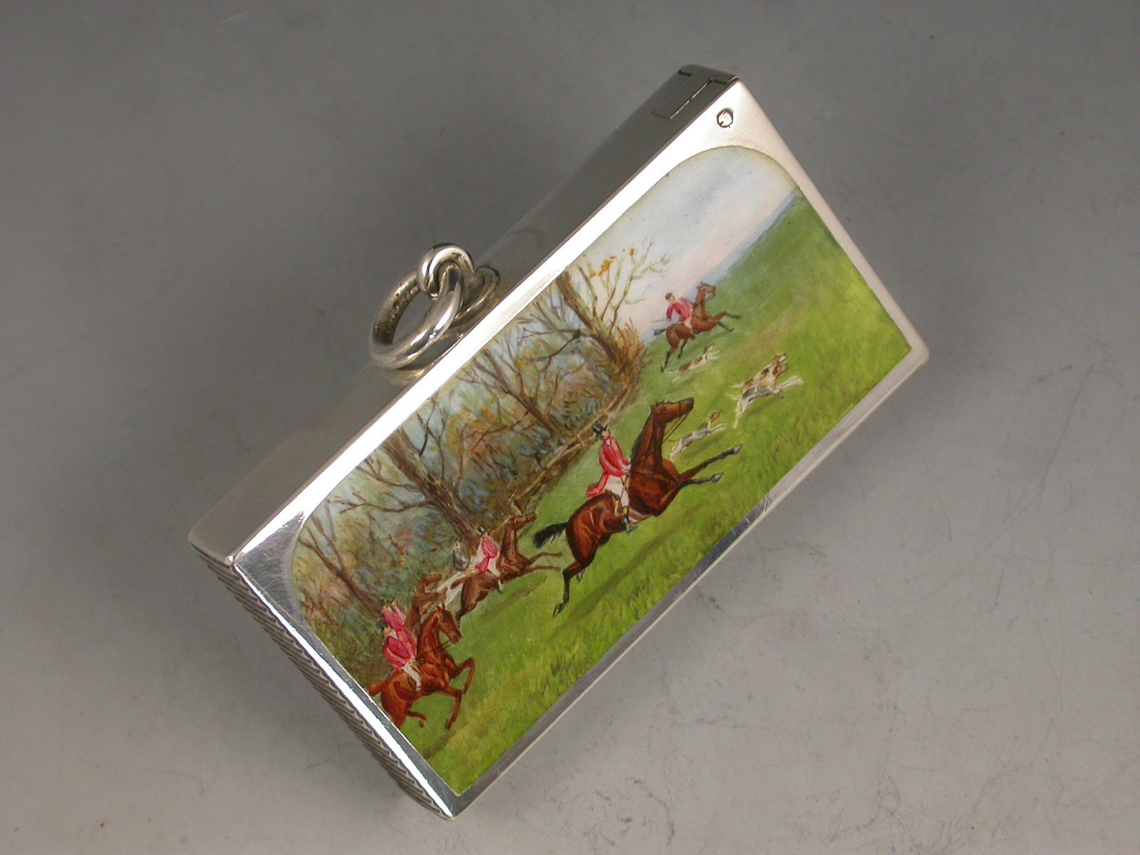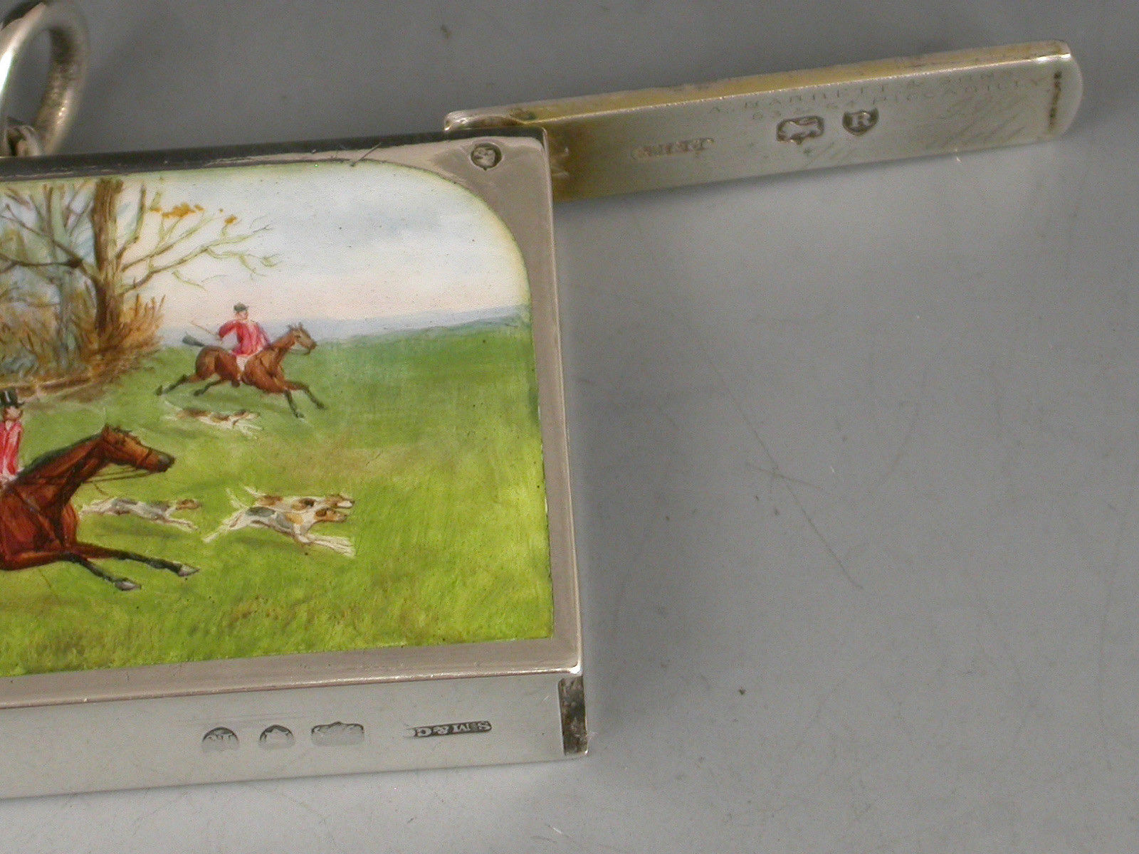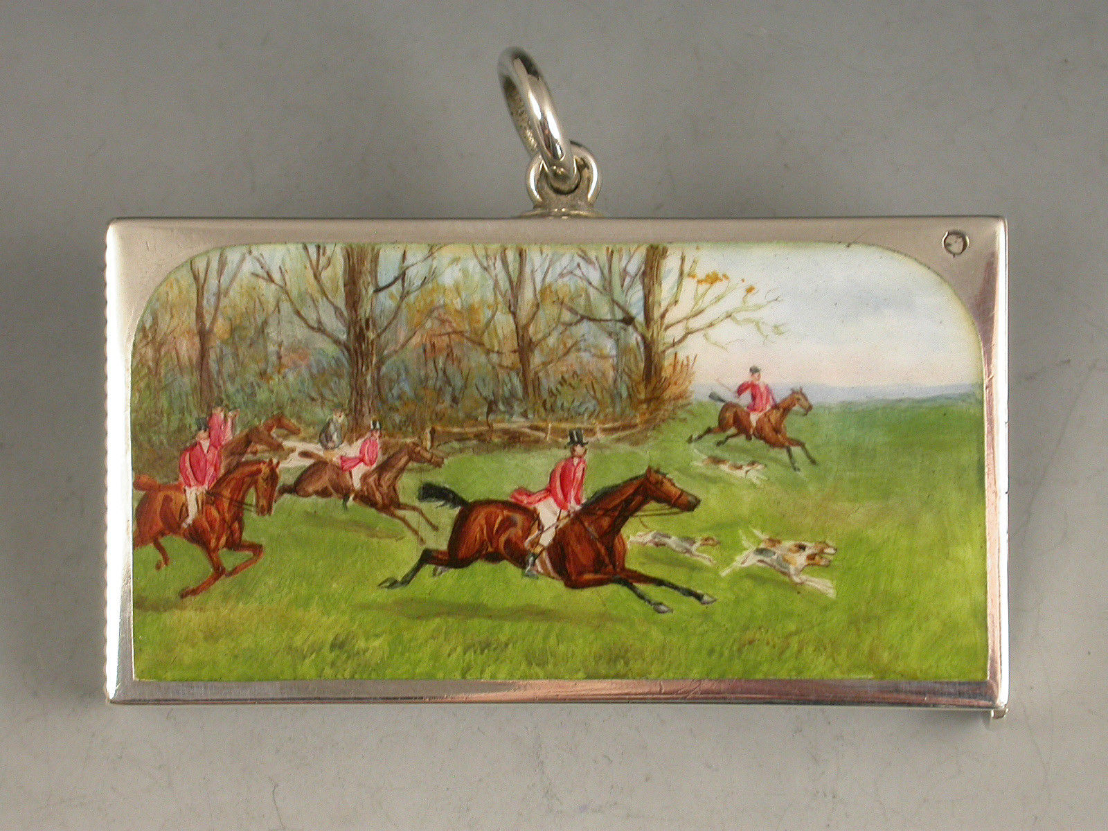 Victorian Silver & Enamel Hunting Scene Vesta Case