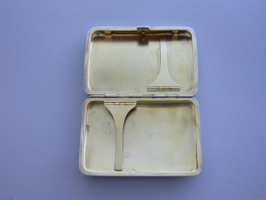 One of a series of silver and enamel Cigarette & Vesta Cases produced by Thomas Johnson & Frederick Edmonds & Edward Johnson in 1889/90 of which only two Cigarette and seven Vesta Cases are currently known.