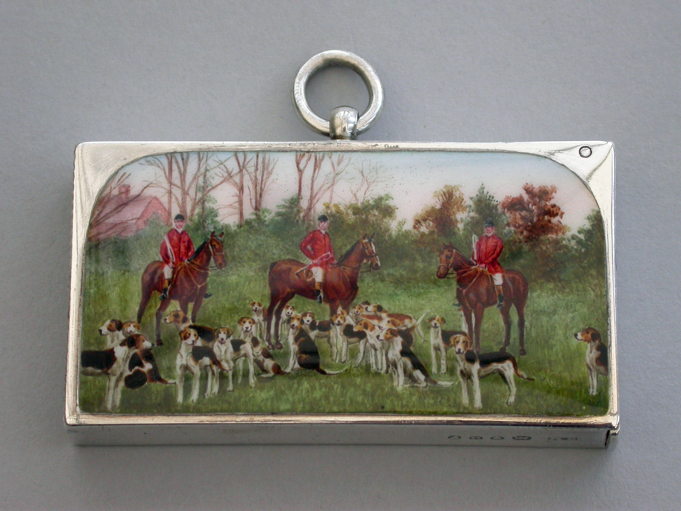 Victorian Silver & Enamel Quorn Hunt Vesta Case