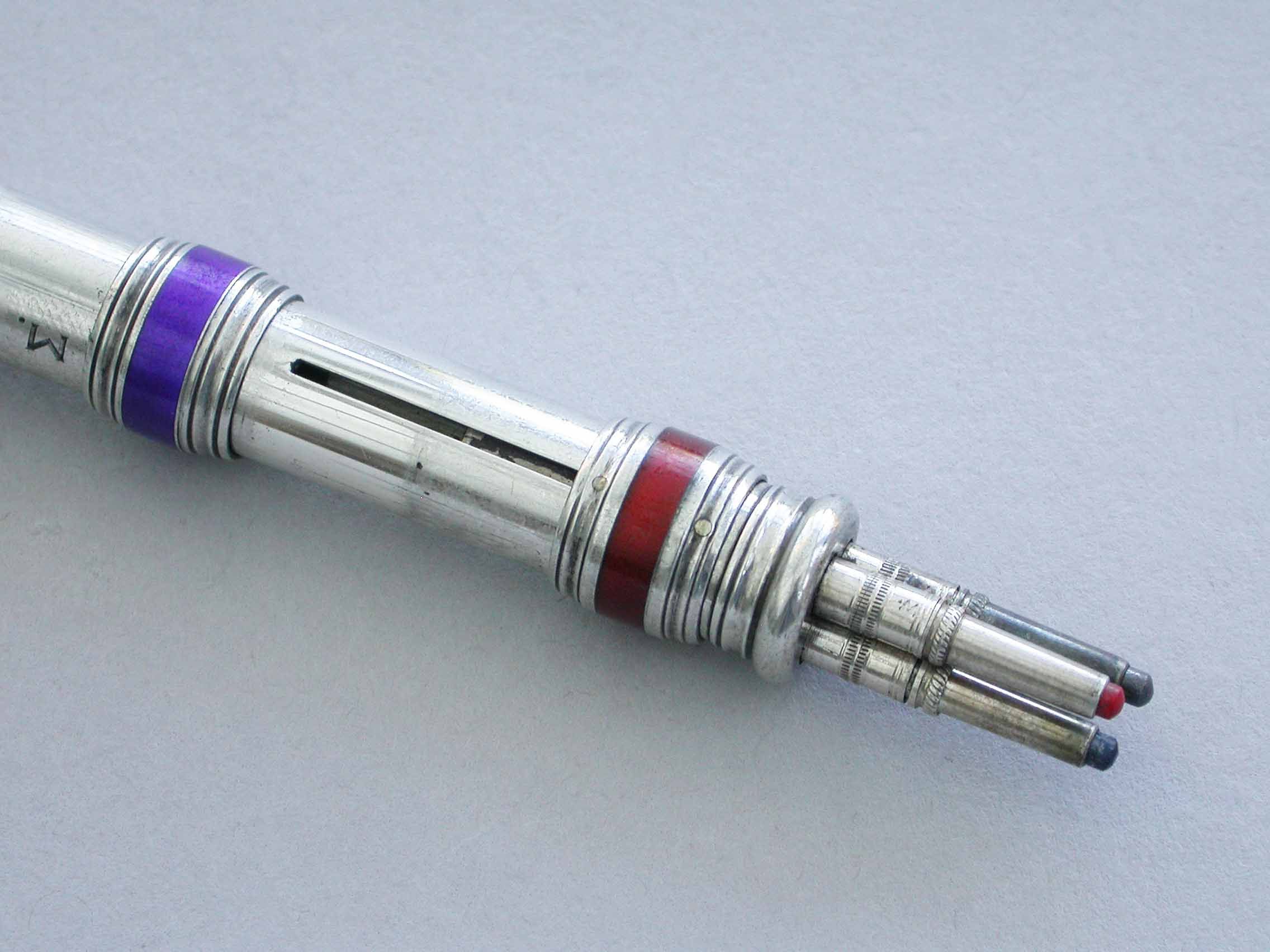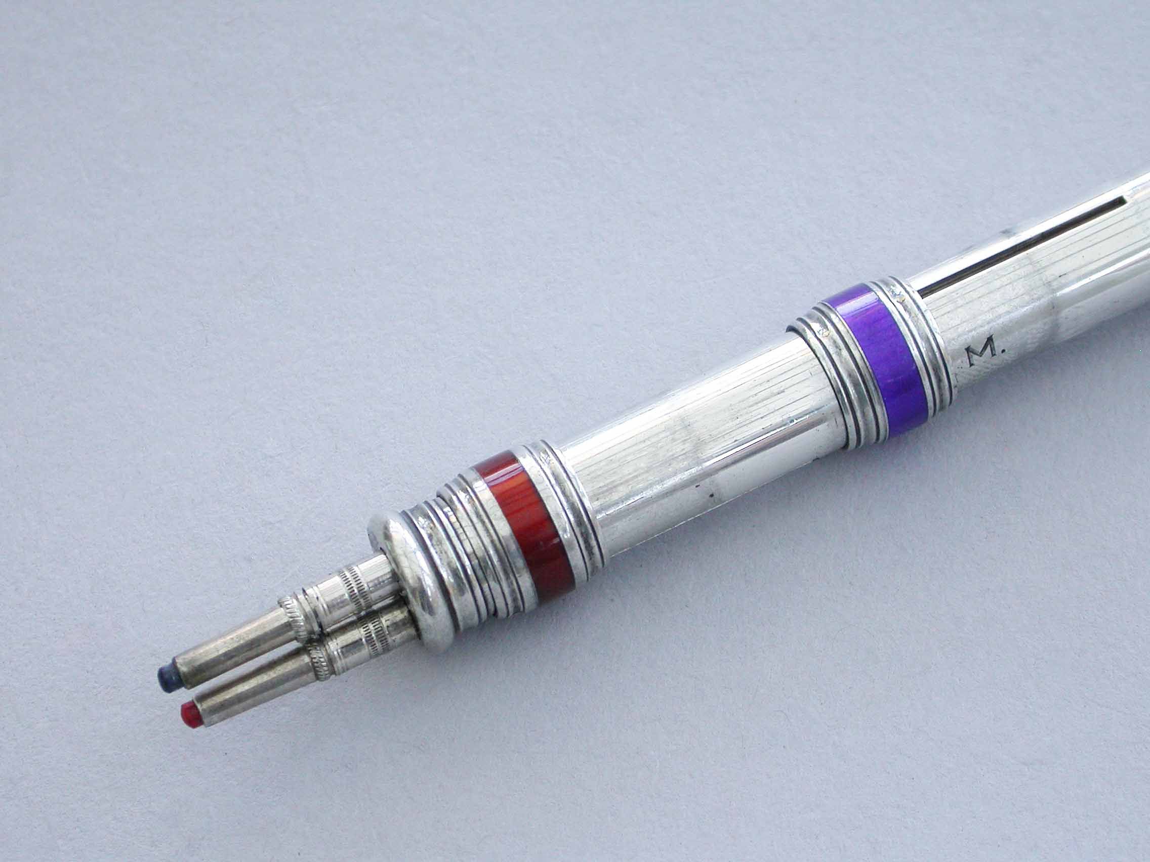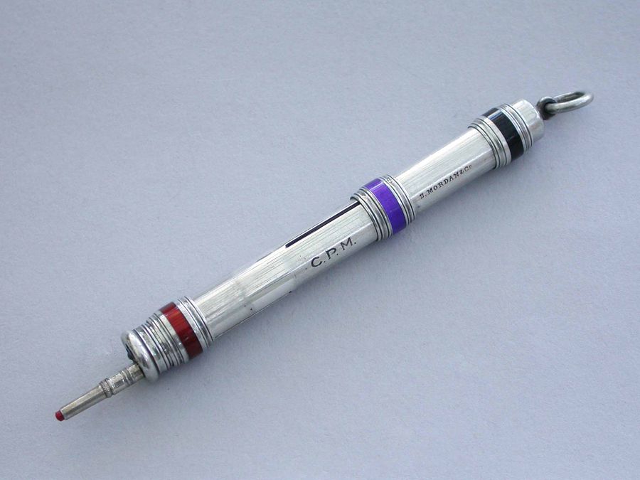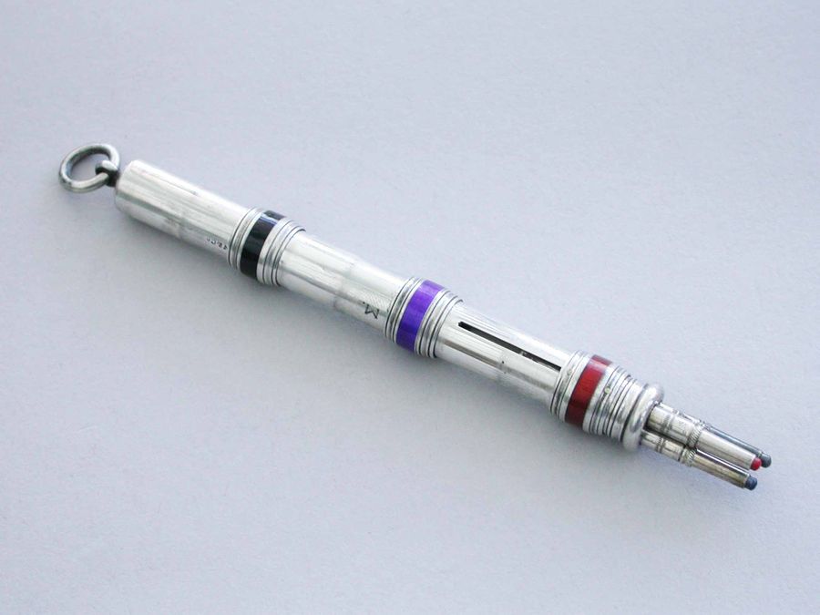 Victorian Silver & Enamel Three Colour Sliding Propelling Pencil