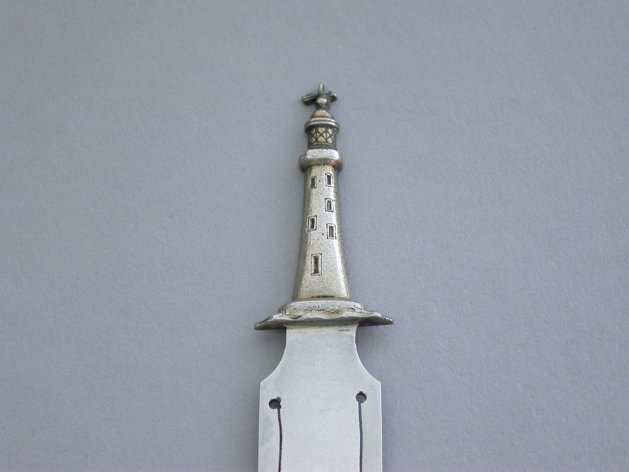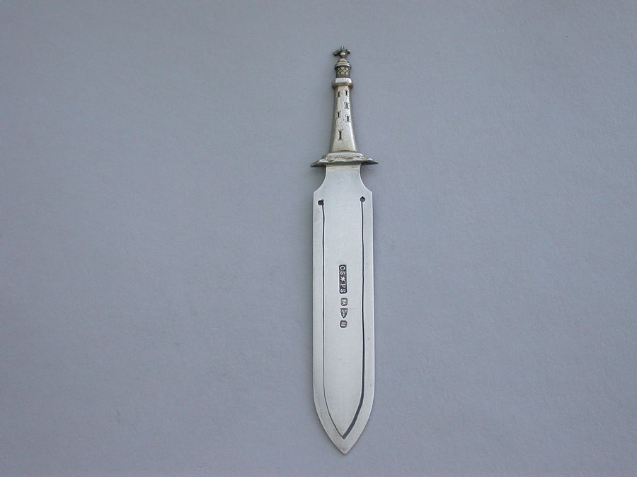 A rare and good quality Victorian silver and parcel gilt Bookmark, the gilded terminal formed as the Eddystone Lighthouse.