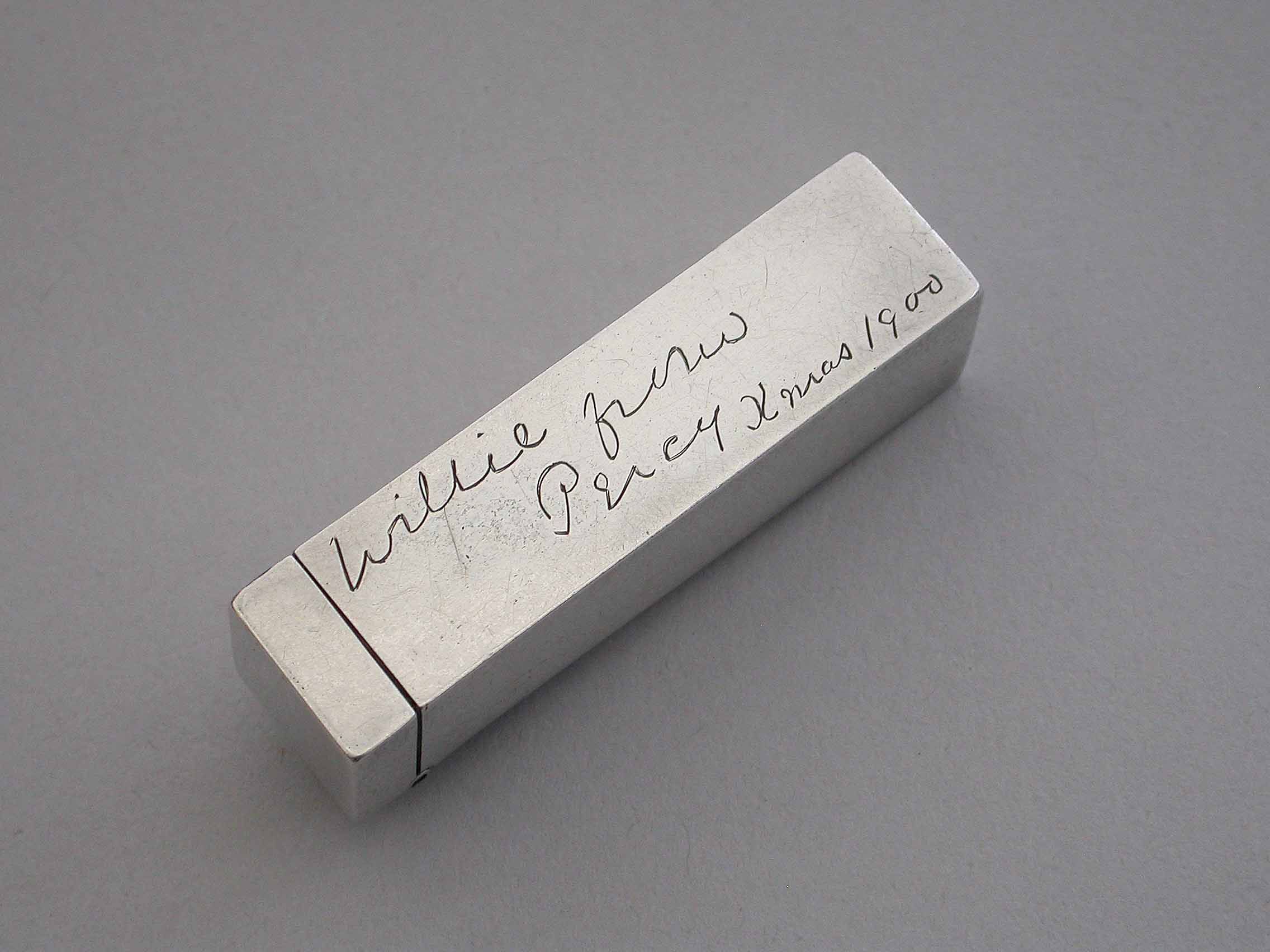 Victorian Silver Butt Marker - "Willie from Percy Xmas 1900"