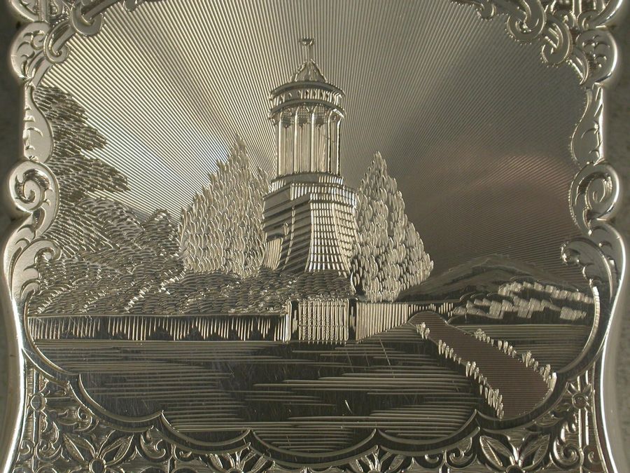 Victorian Silver Castle Top Card Case ""Burns Monument""