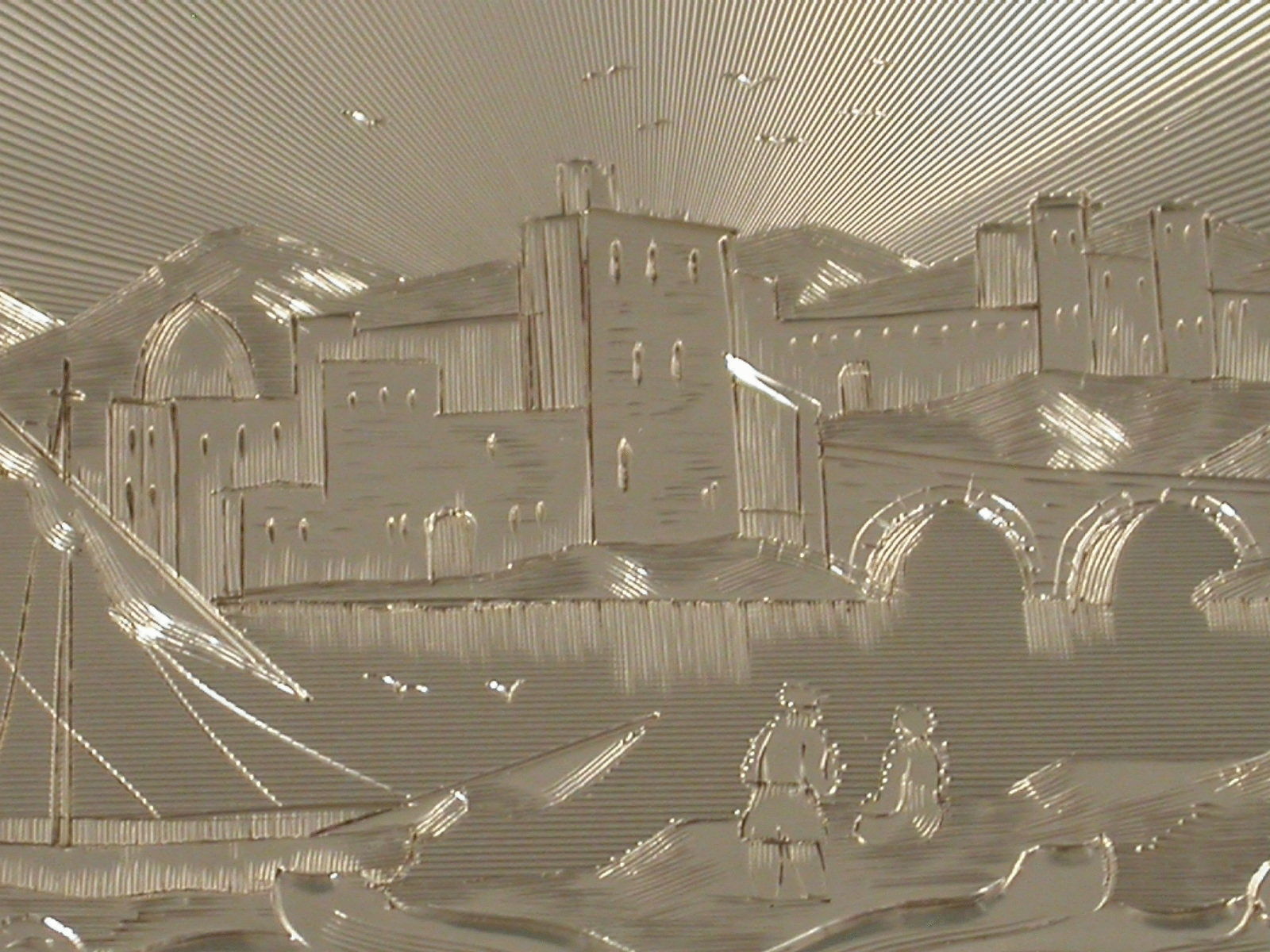 Victorian Silver Engraved Harbour Scene Vinaigrette
