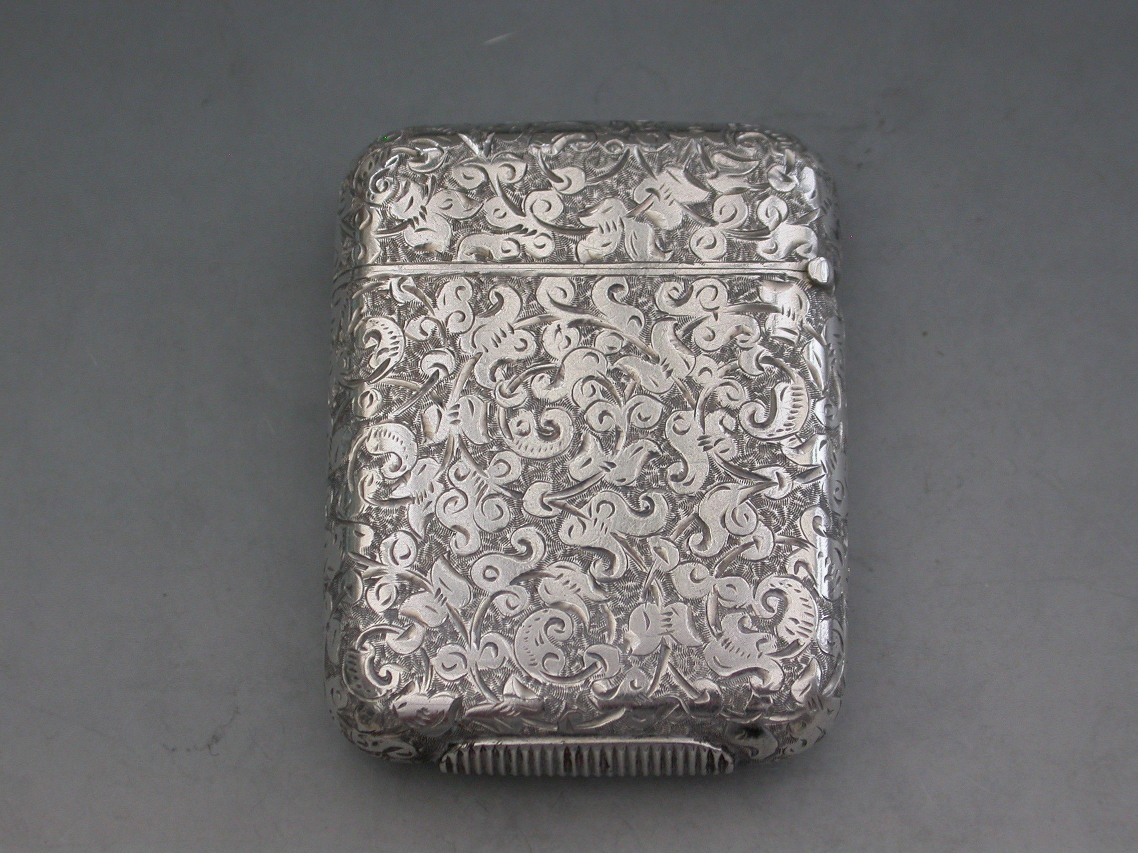 Victorian Silver Foliate Scroll Engraved Vesta Case