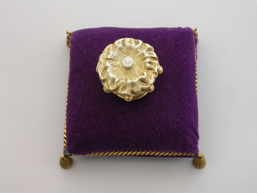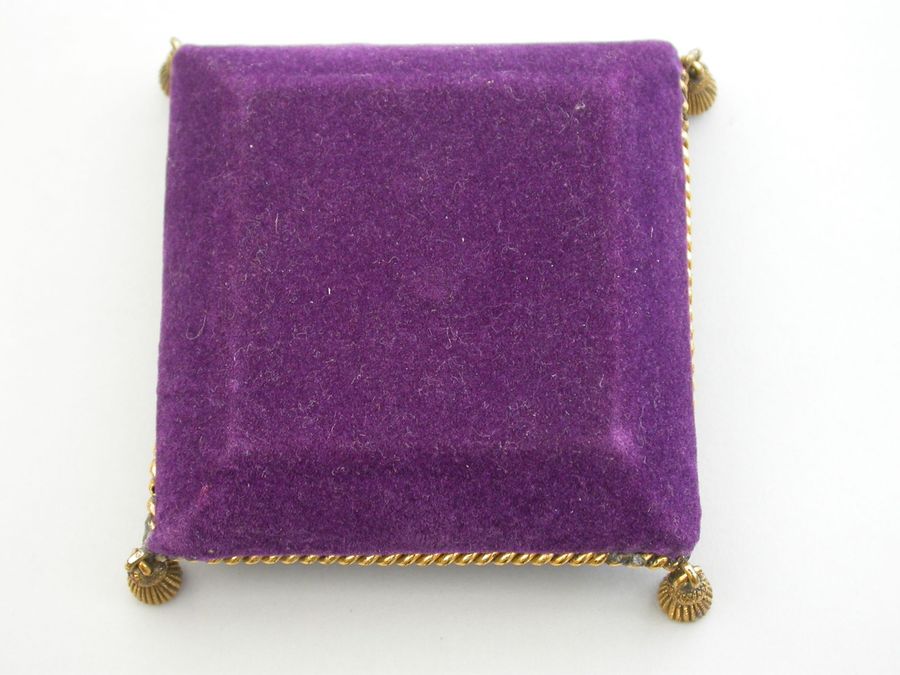 Victorian Silver Gilt Earls Coronet Vinaigrette on Velvet Cushion