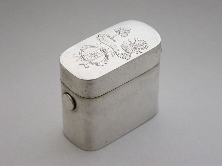 Victorian Silver ""Go-to-Bed"" Vesta Case Okeover Family Crests