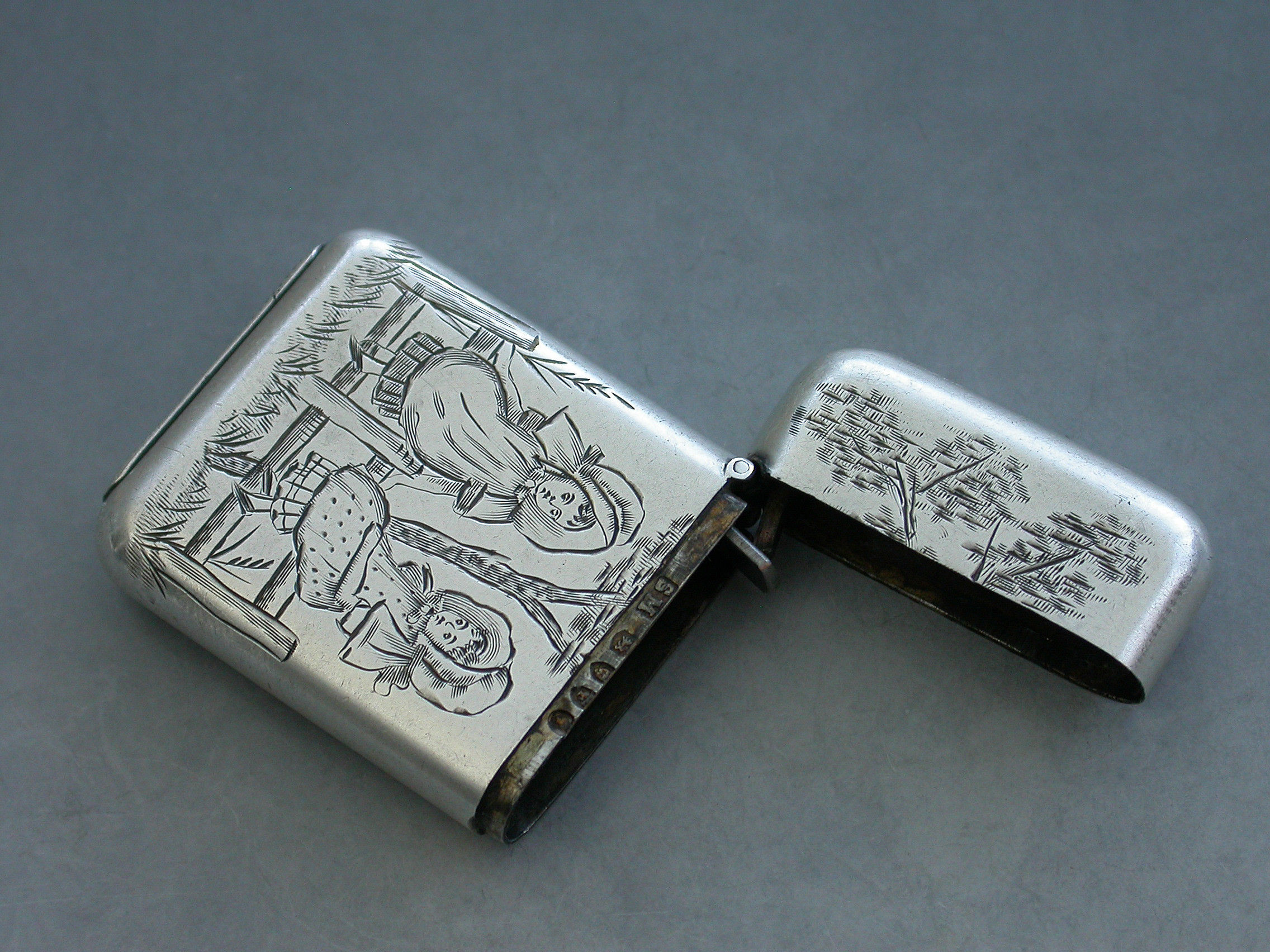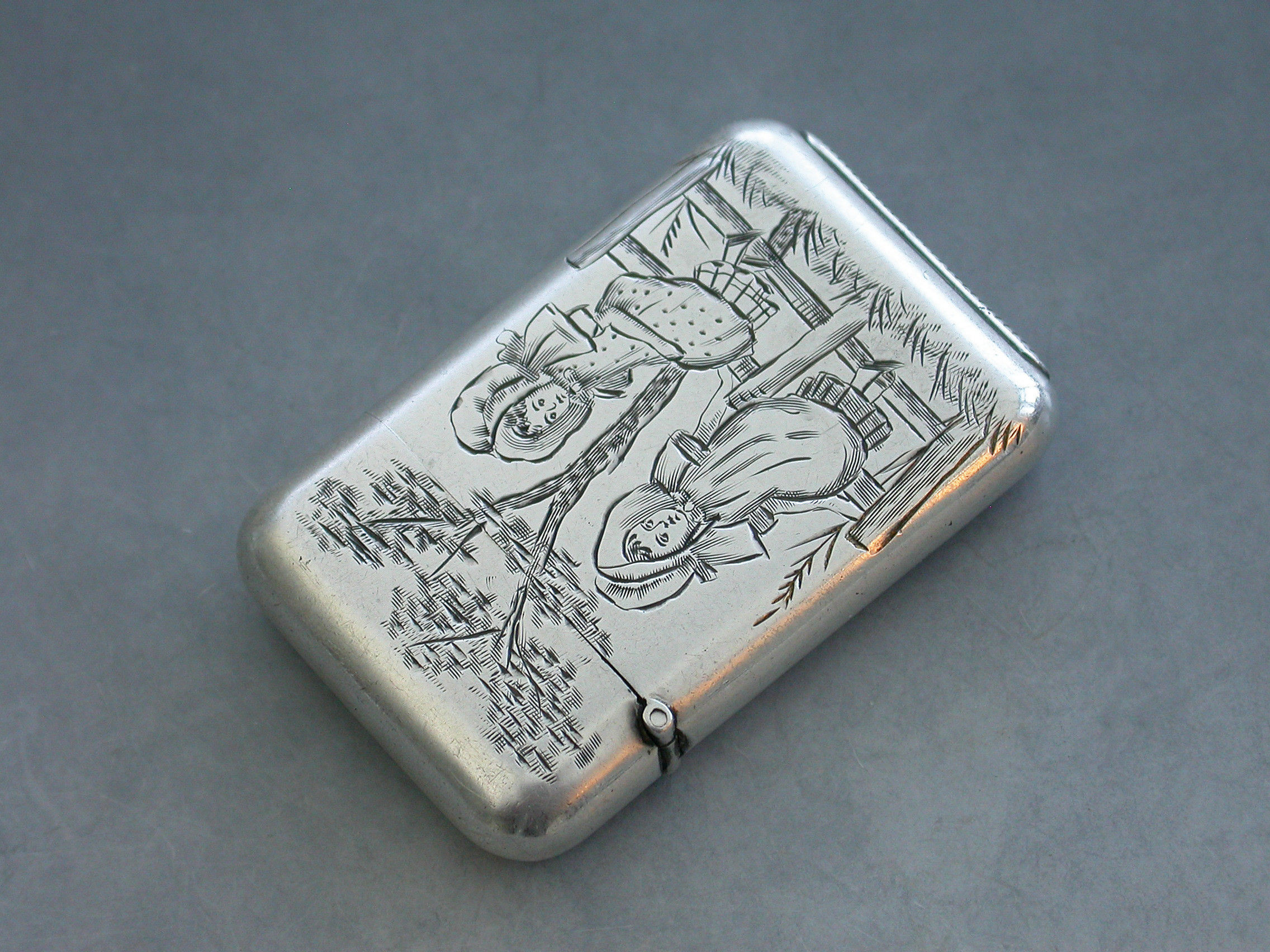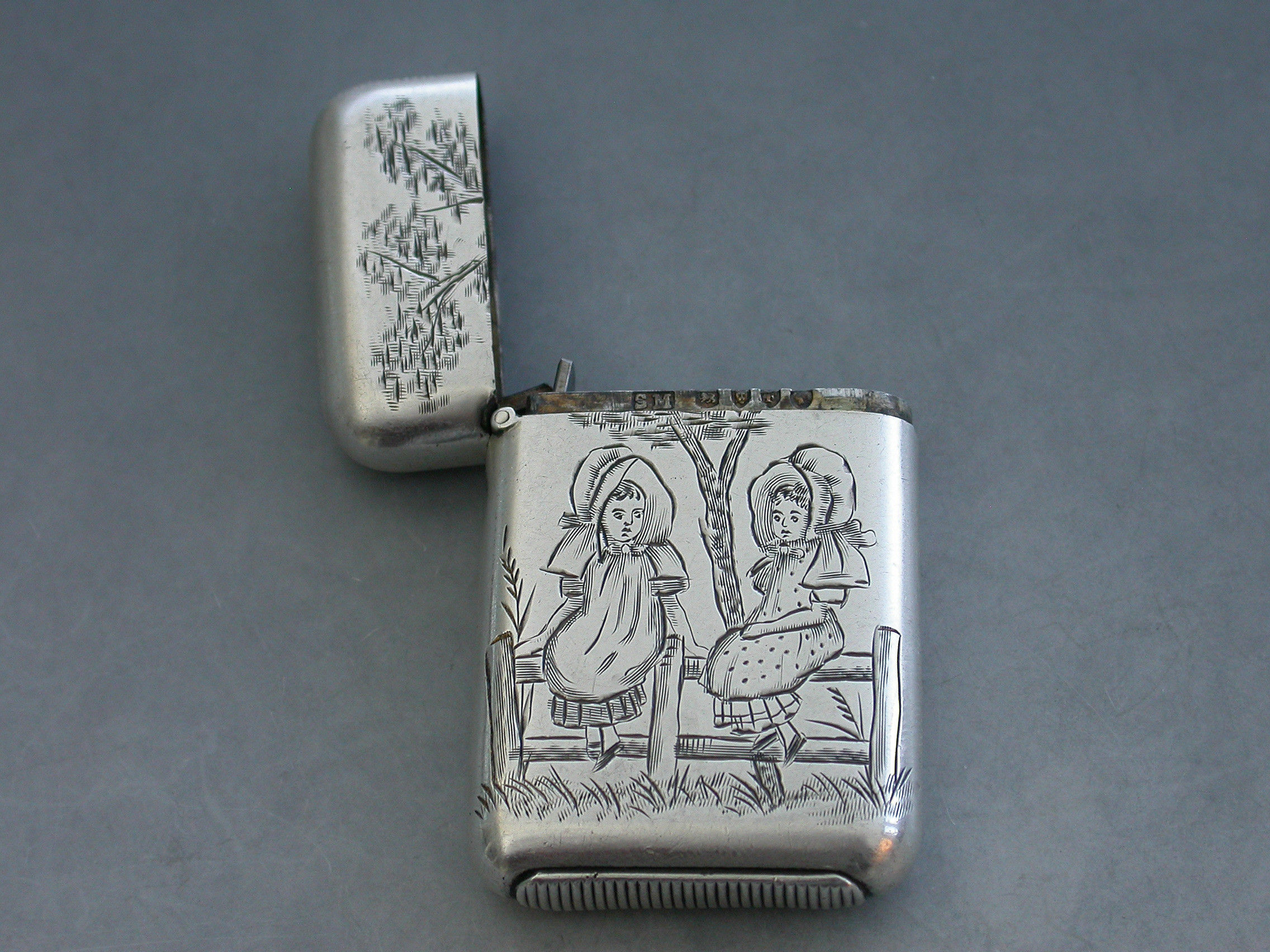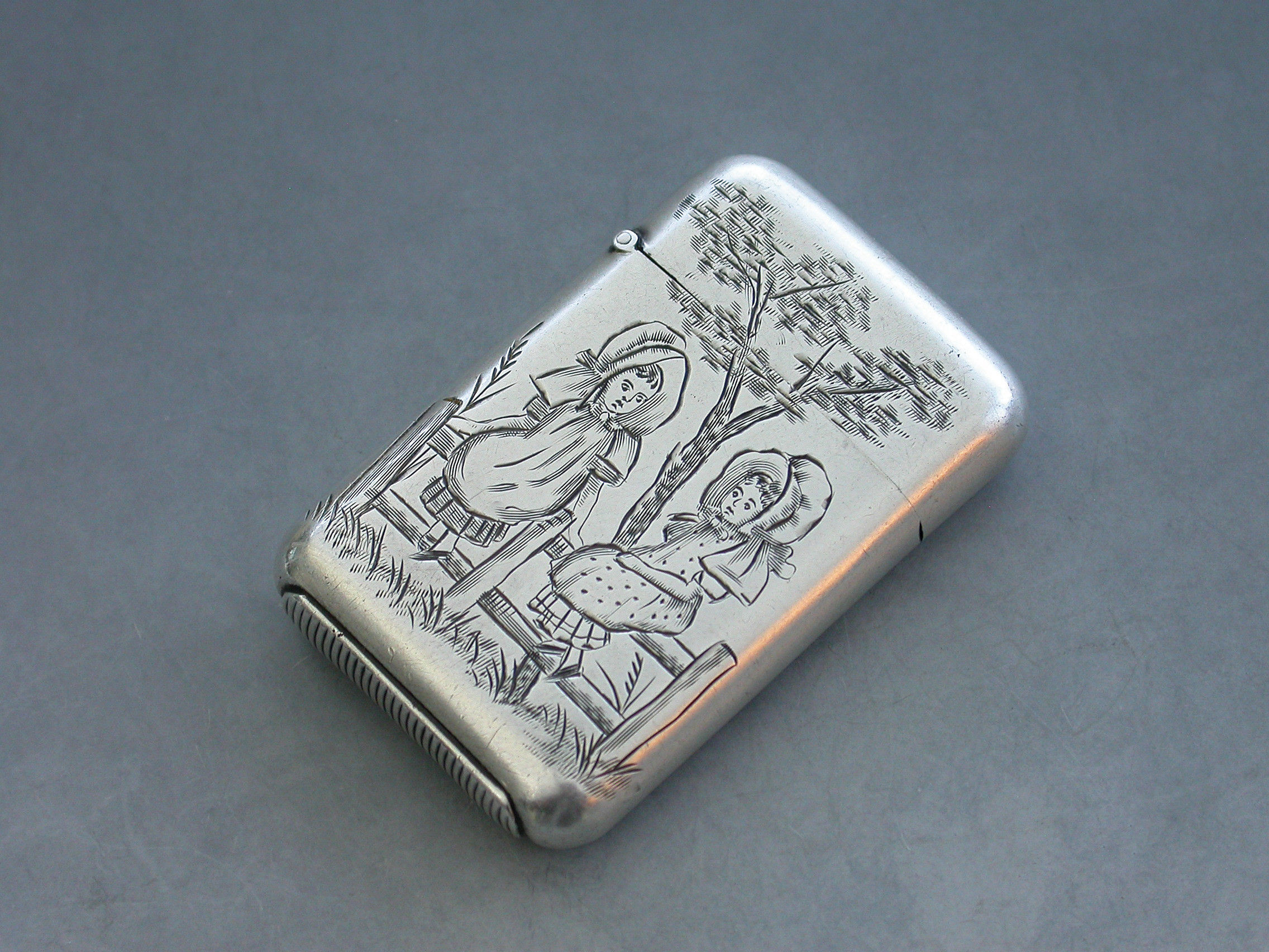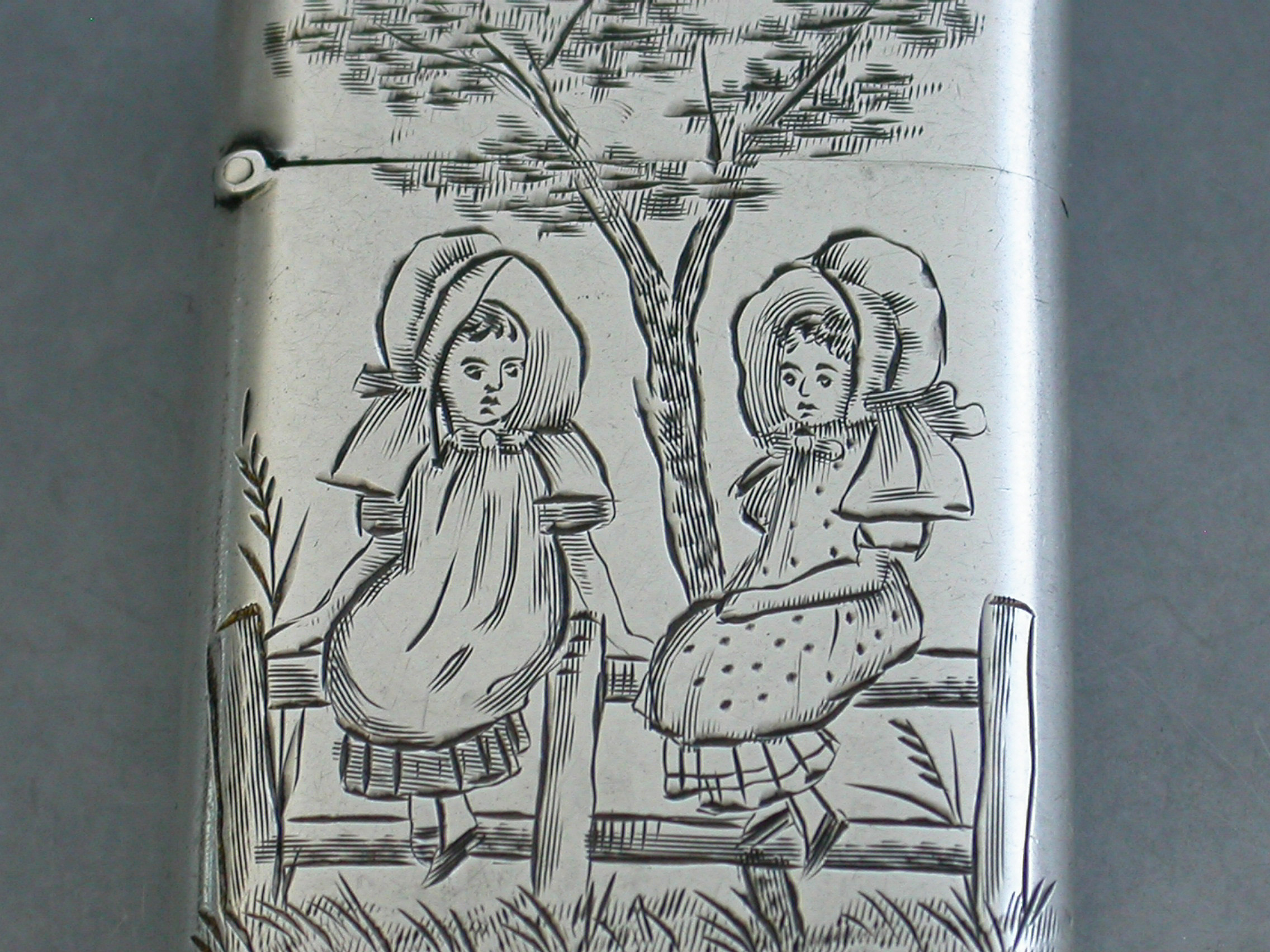 Victorian Silver 'Kate Greenaway' Vesta Case - Little Girls & Snail