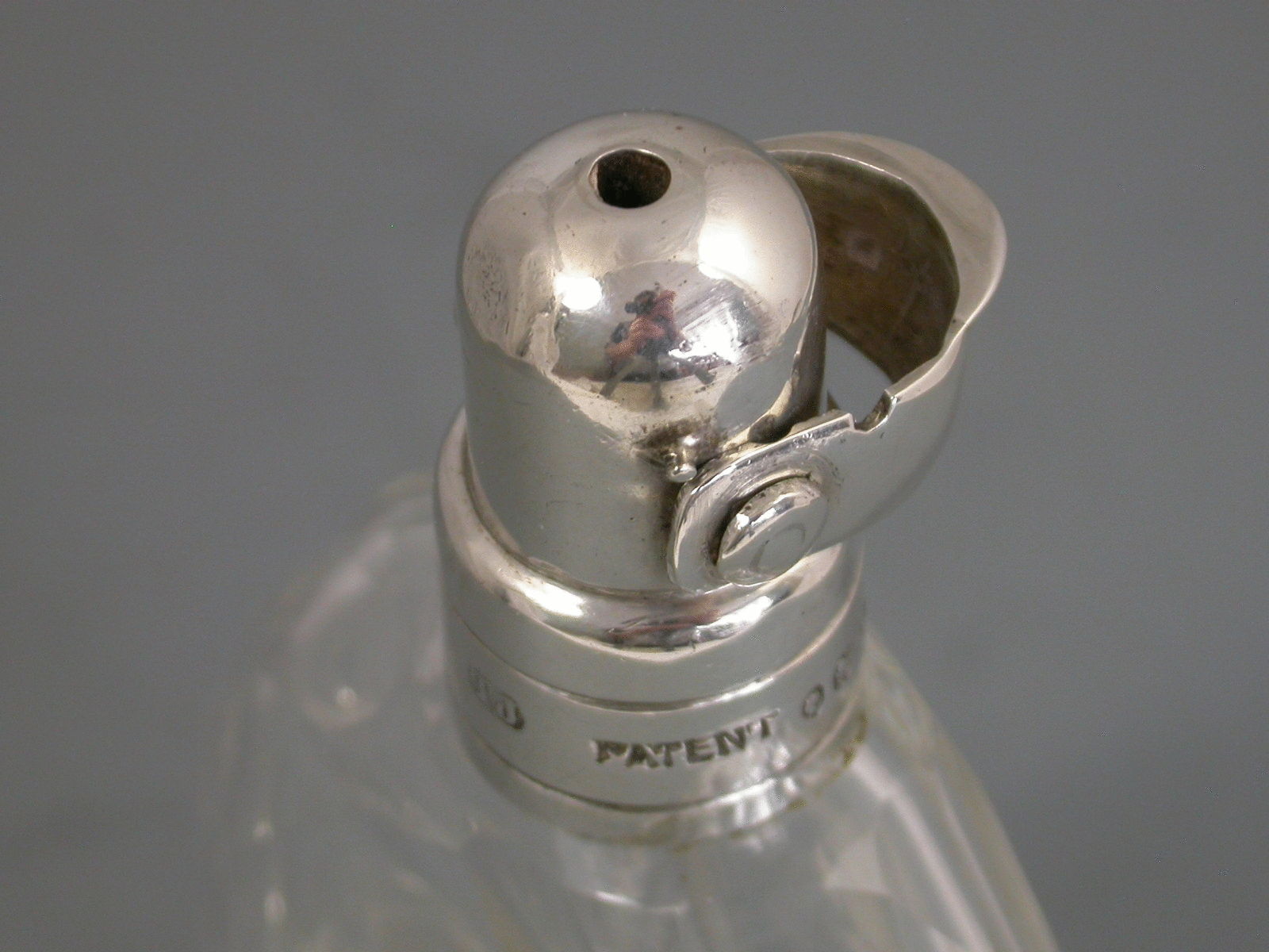 Victorian Silver Mounted Clear Glass Spirit / Perfume Flask Patent Closure