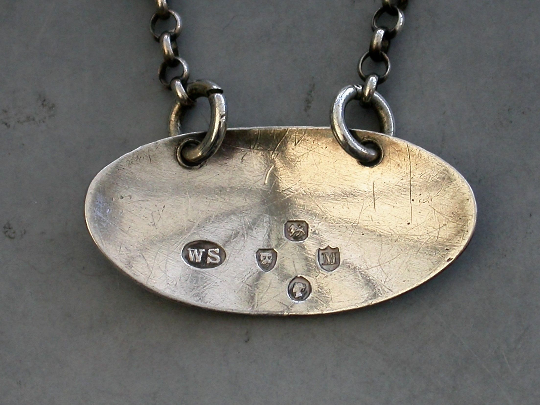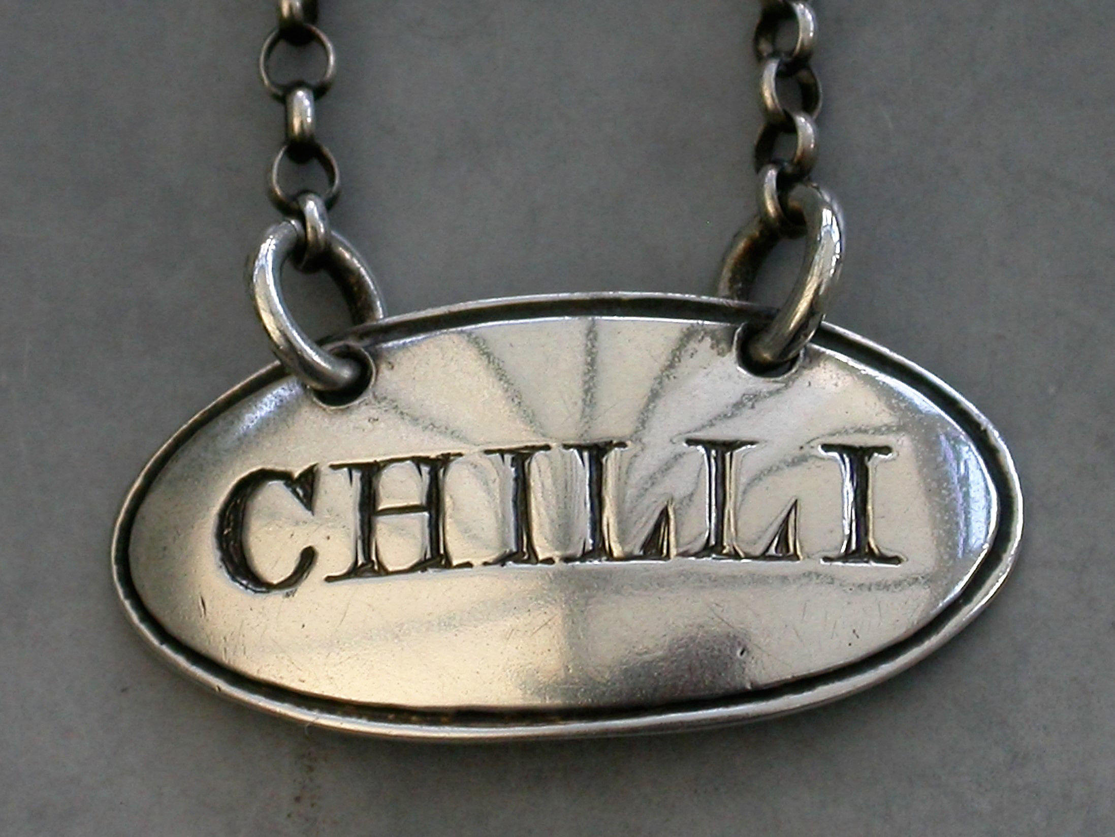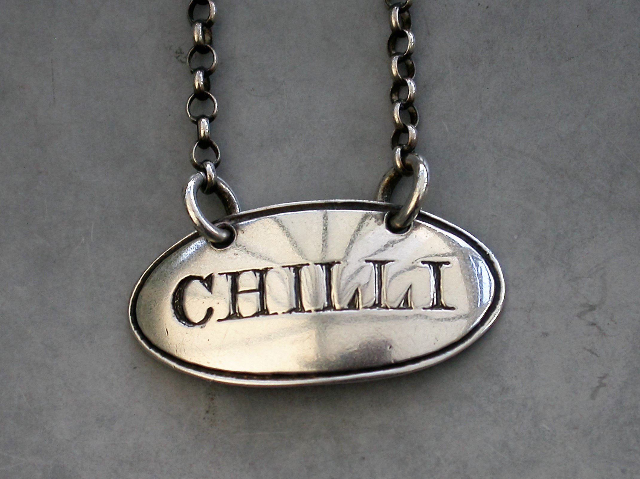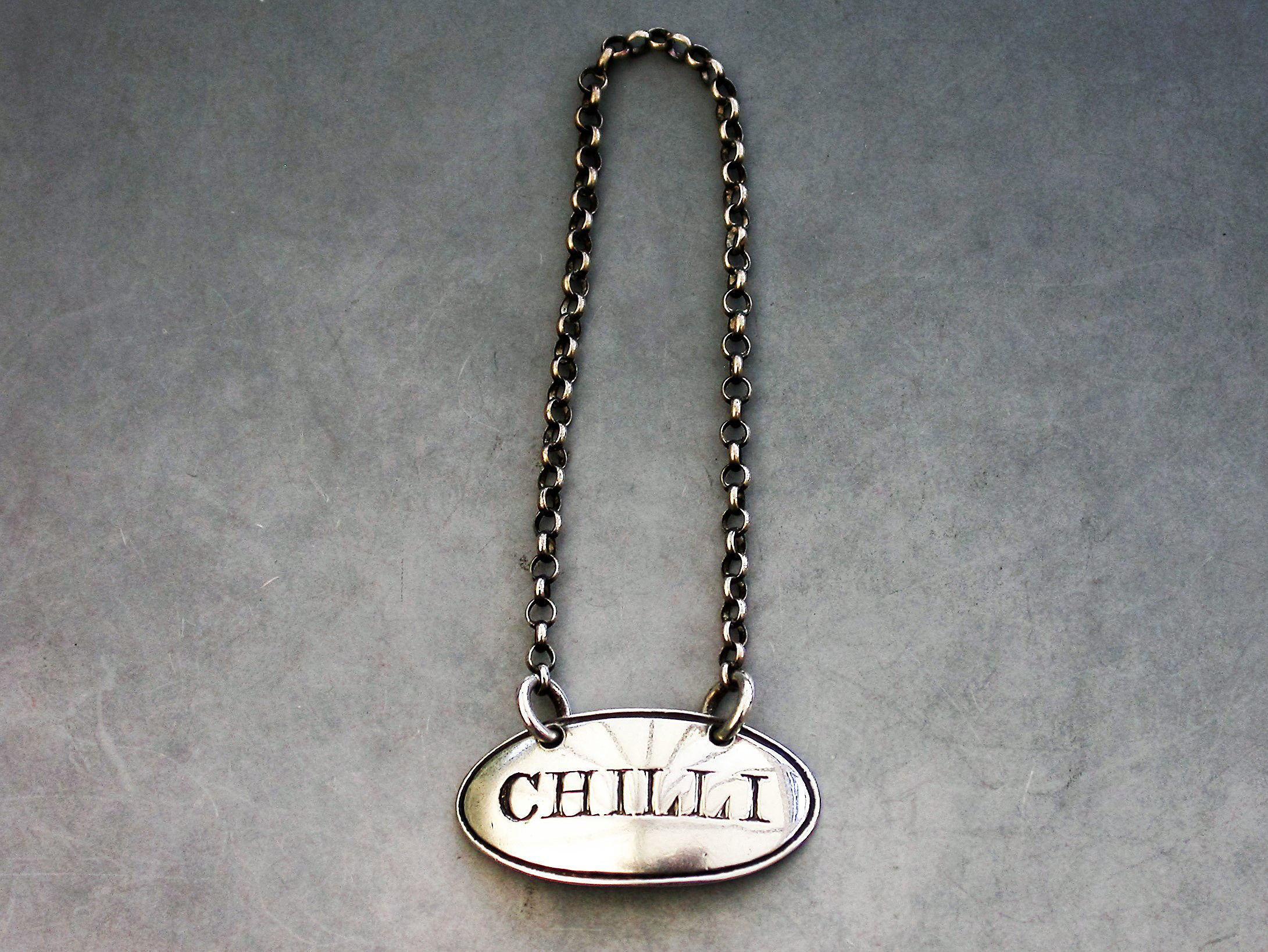 A good Victorian silver Sauce Label of plain oval form with signal reeded border, incised for Chilli.