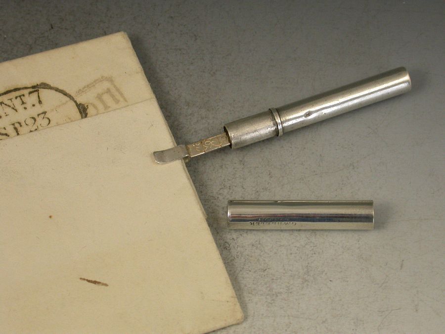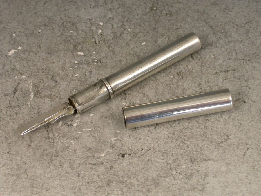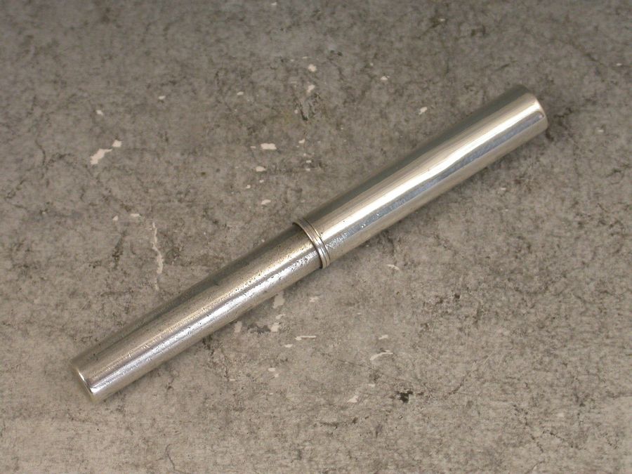 A rare Victorian tubular silver sprung Postal Scale calibrated in half ounces to two ounce maximum.