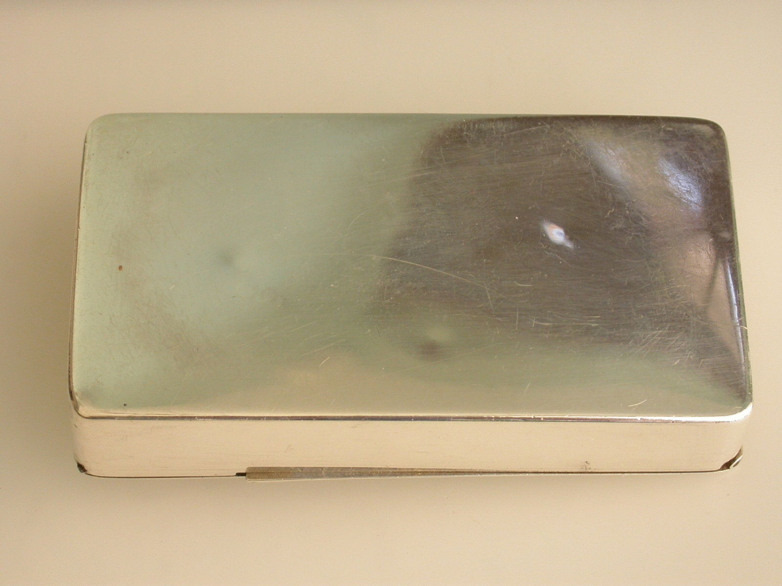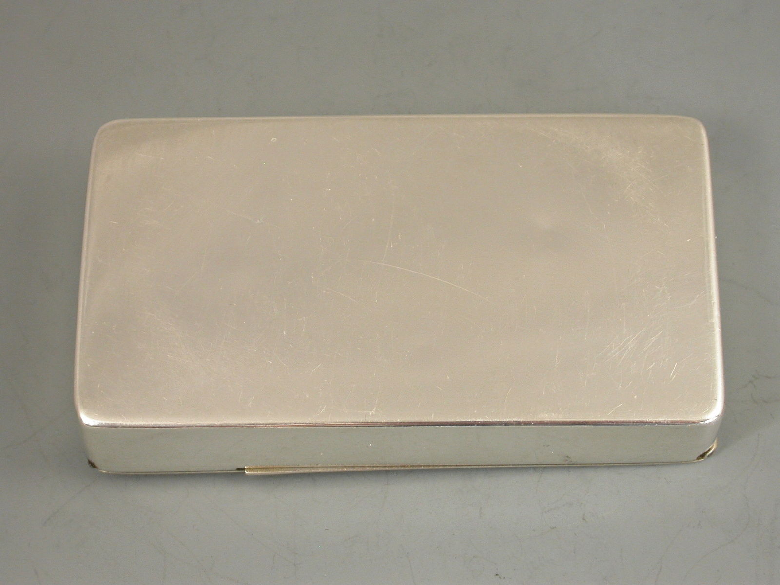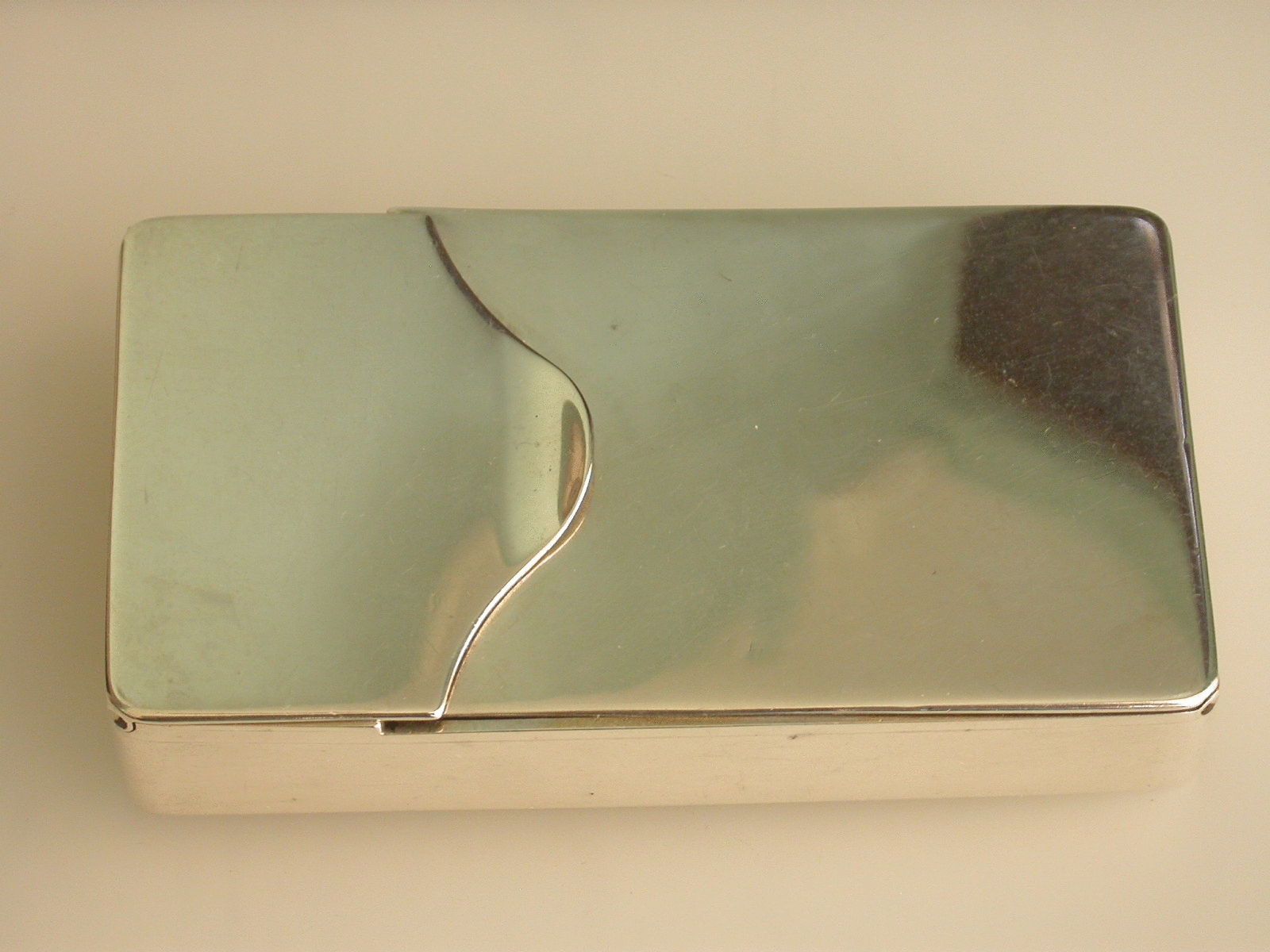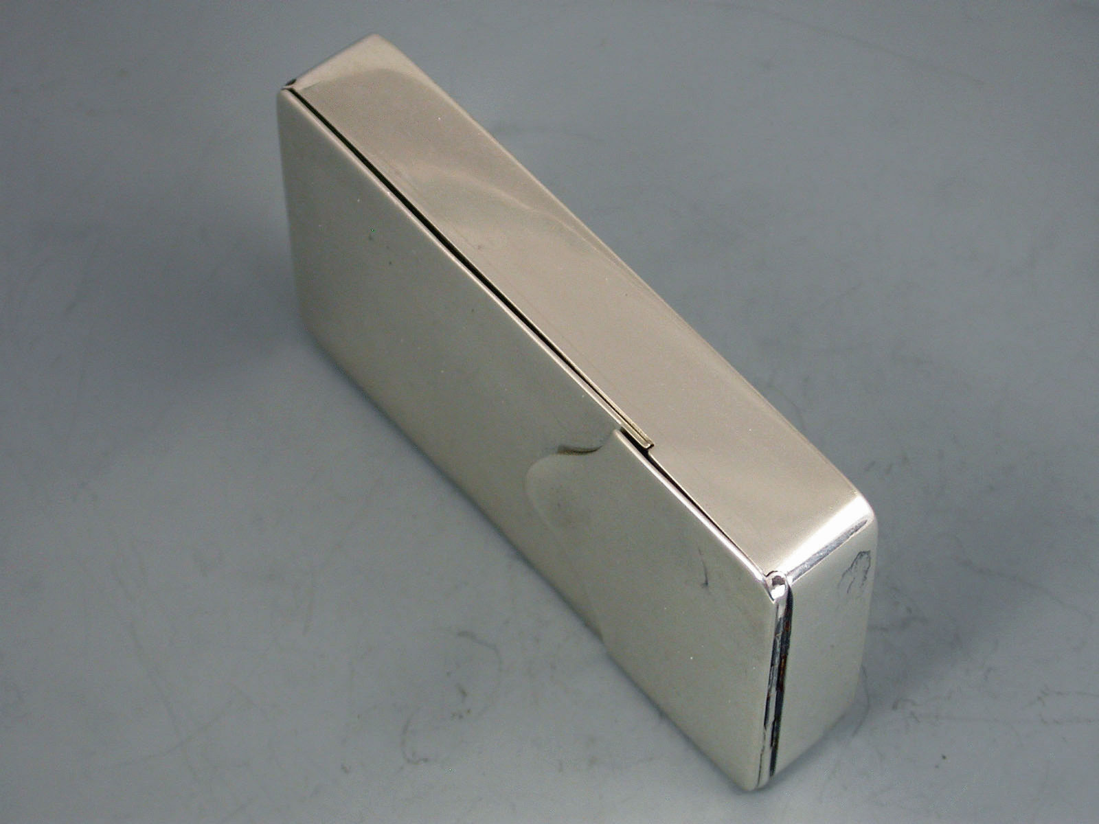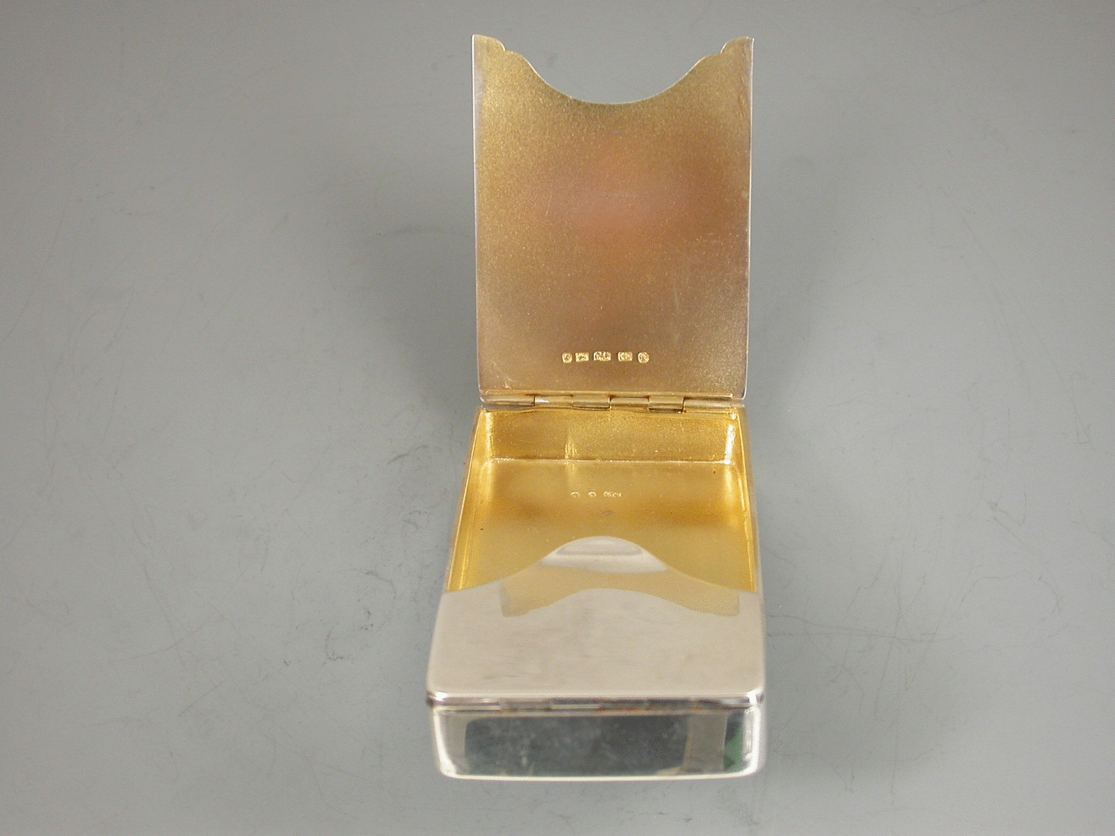 An interesting Victorian silver Visiting Card Case of plain rectangular form with two sprung flaps forming the lid, gilt interior.