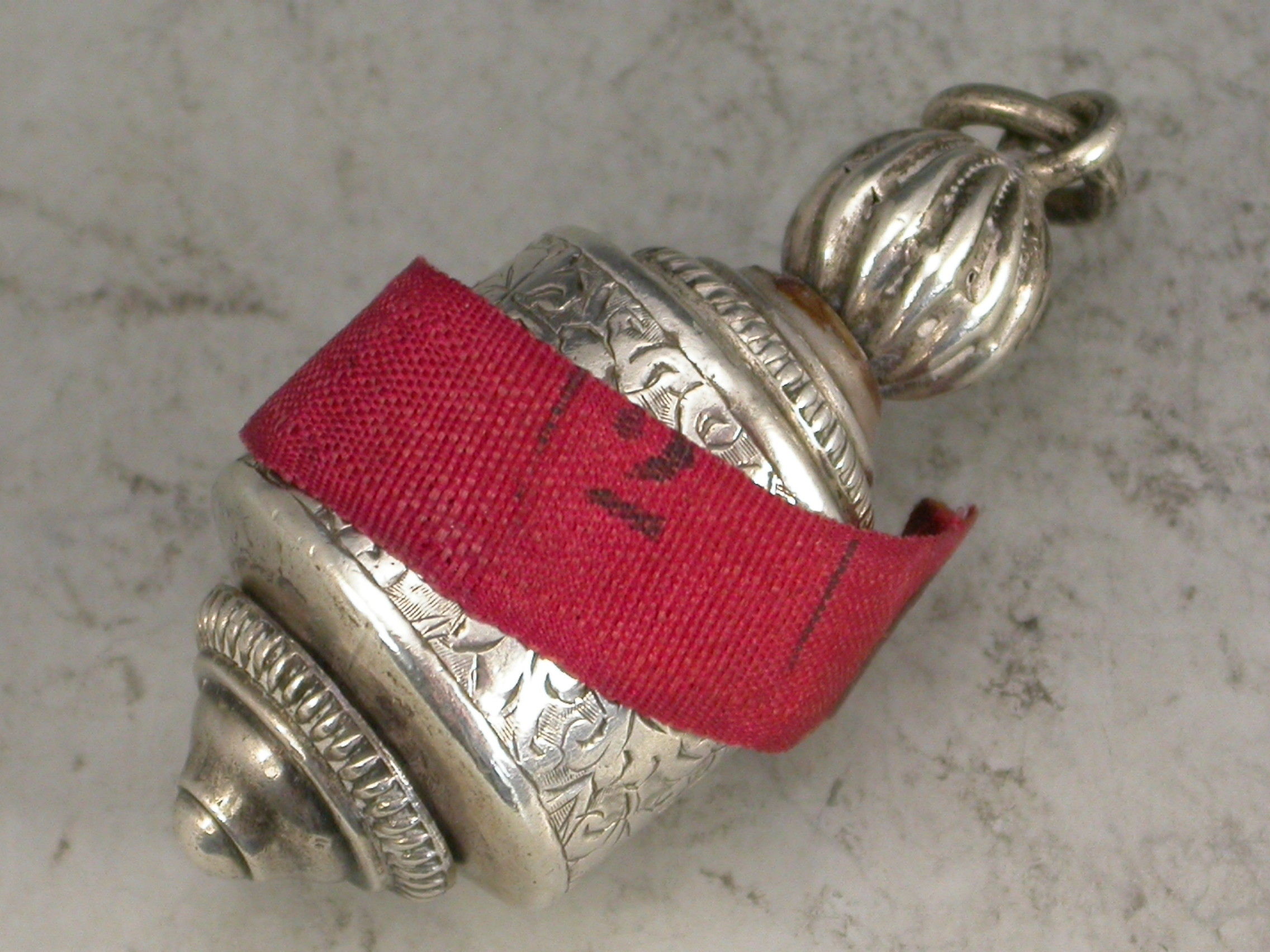 Victorian Silver Tape Measure - Original Red Silk Tape