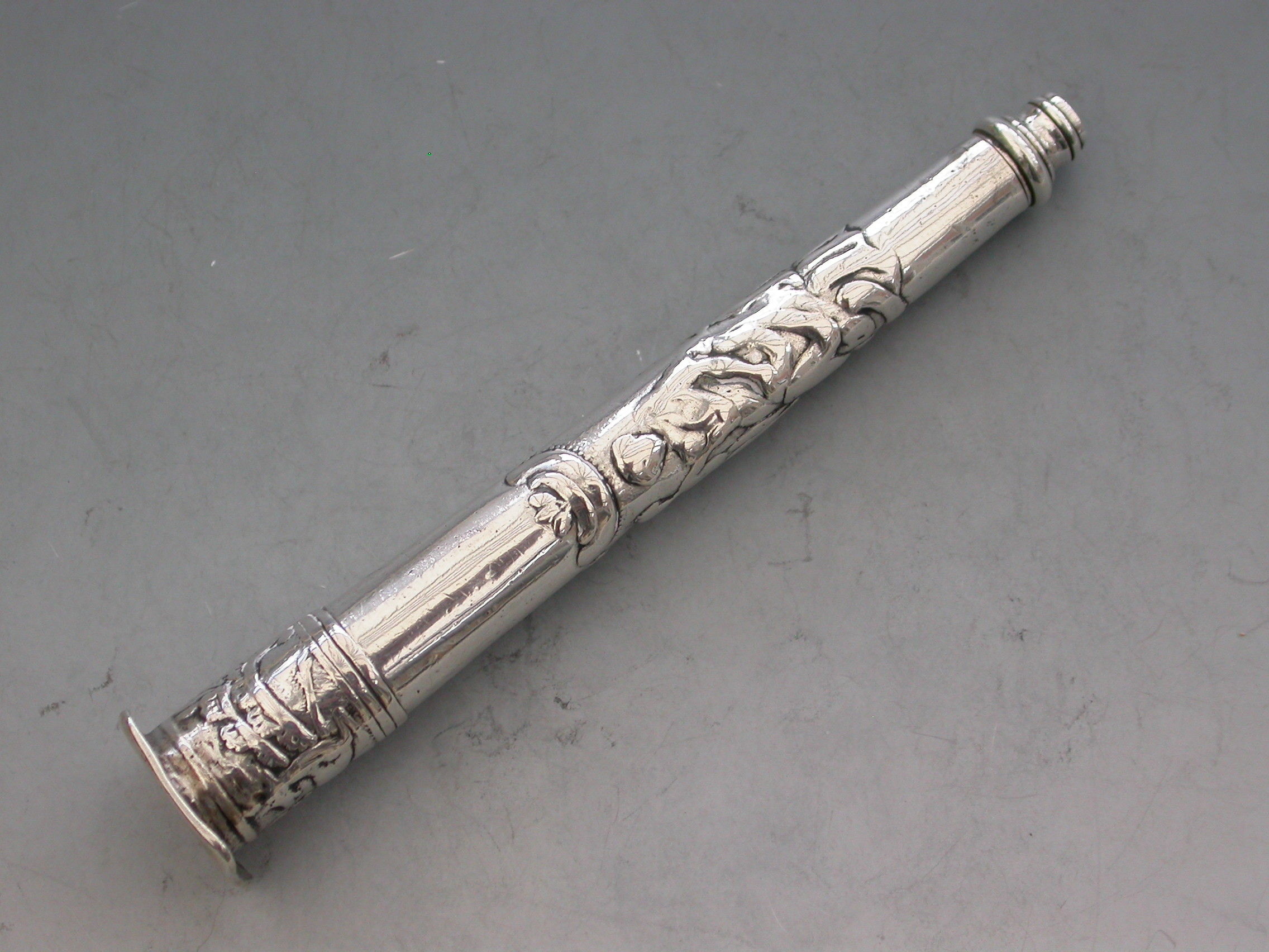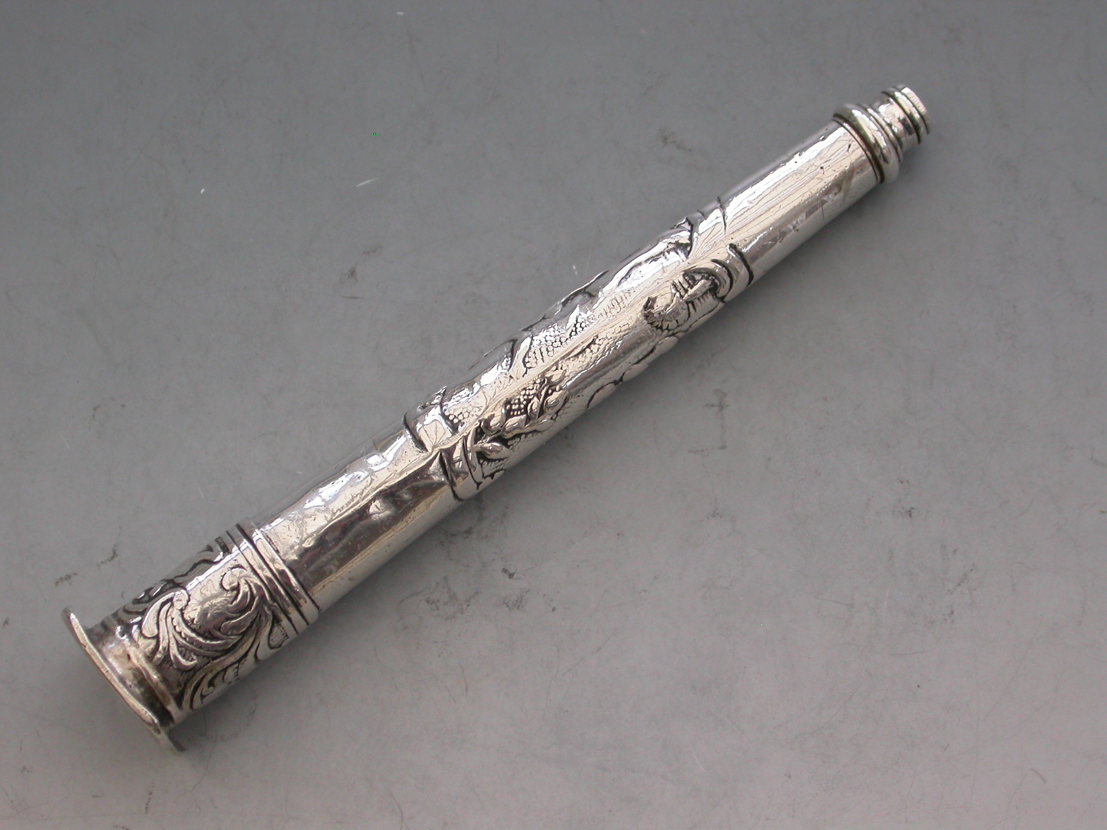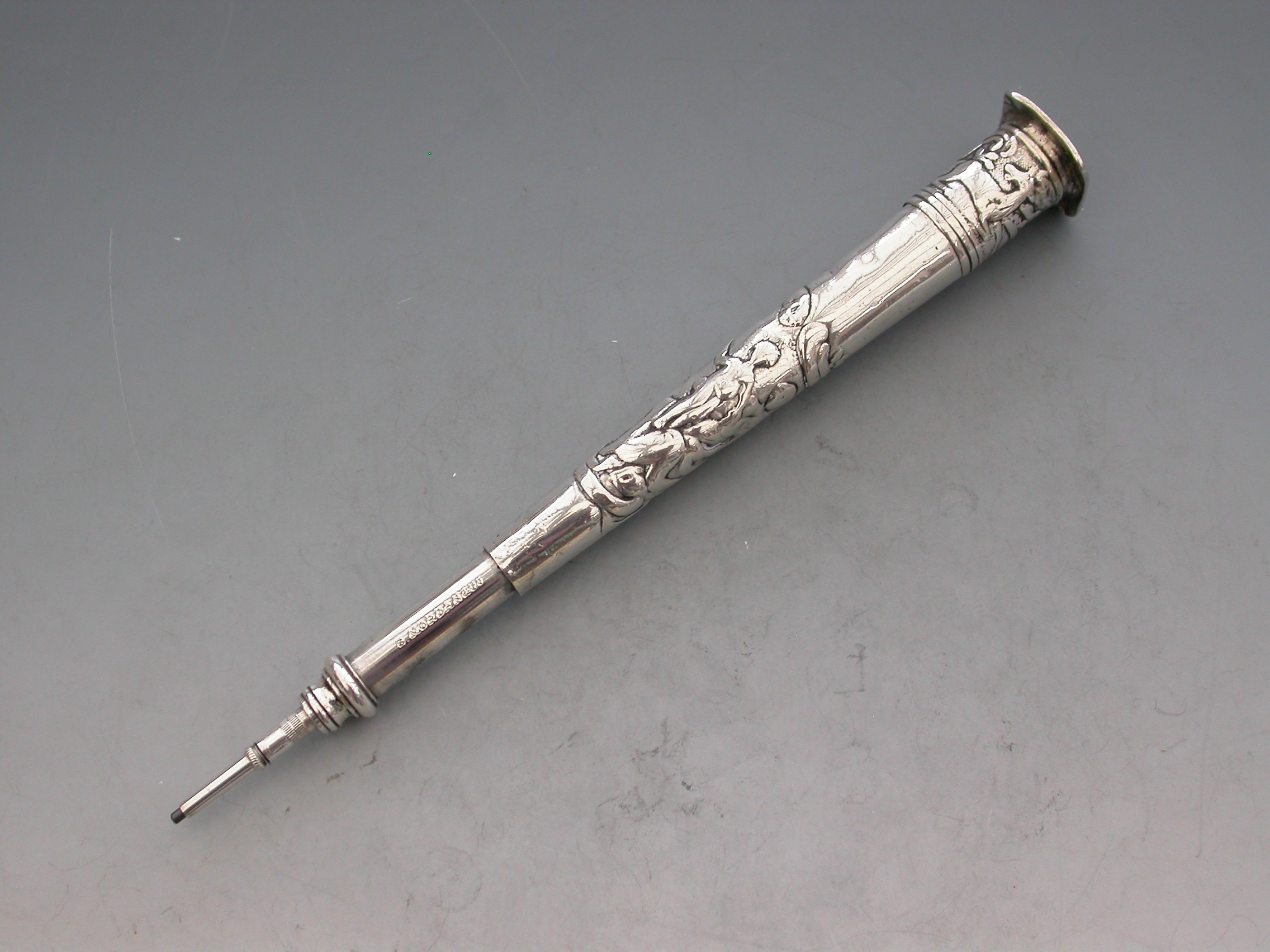 Victorian Silver Telescopic Pencil in Dutch 18th Century Needle Case