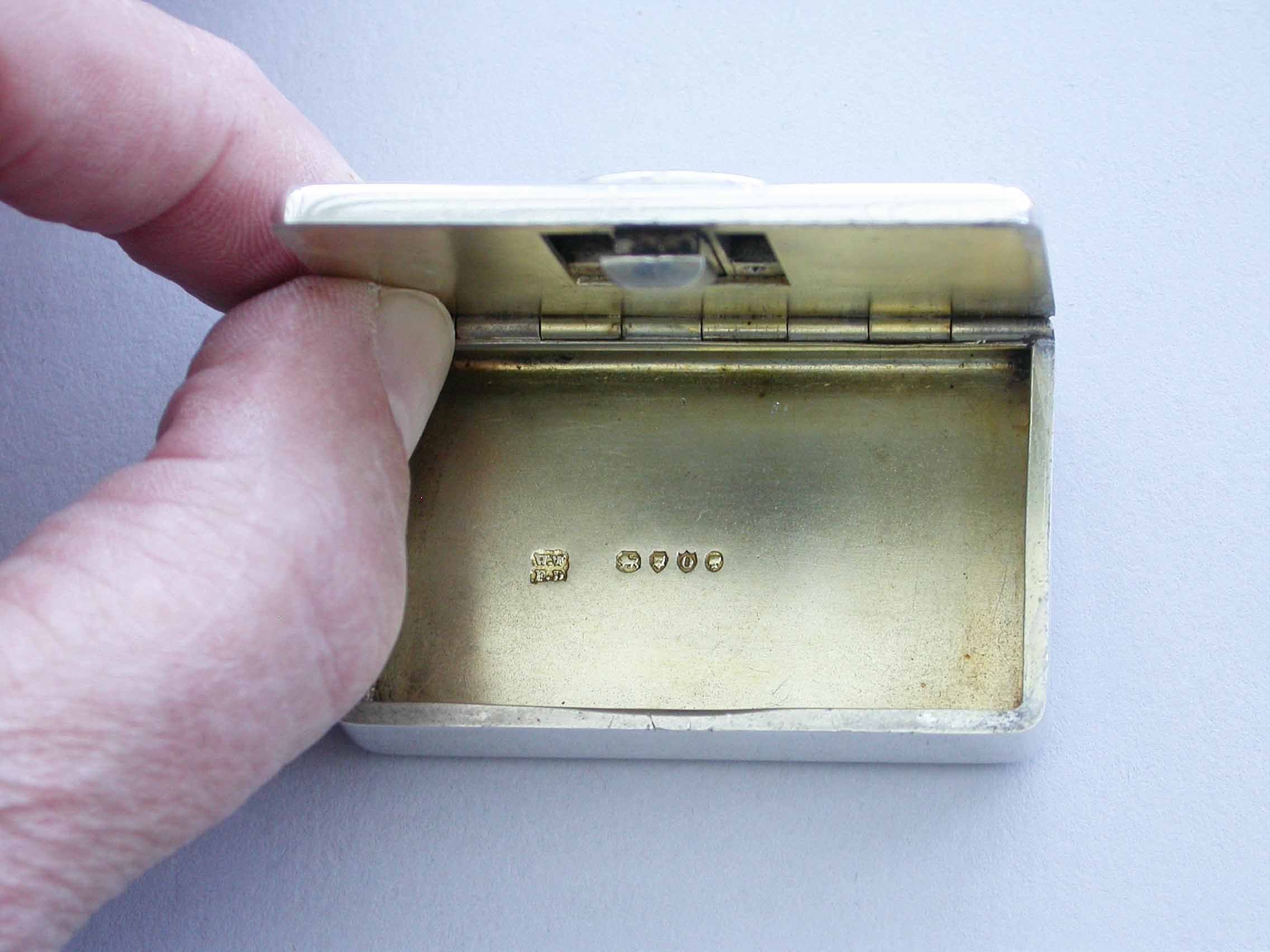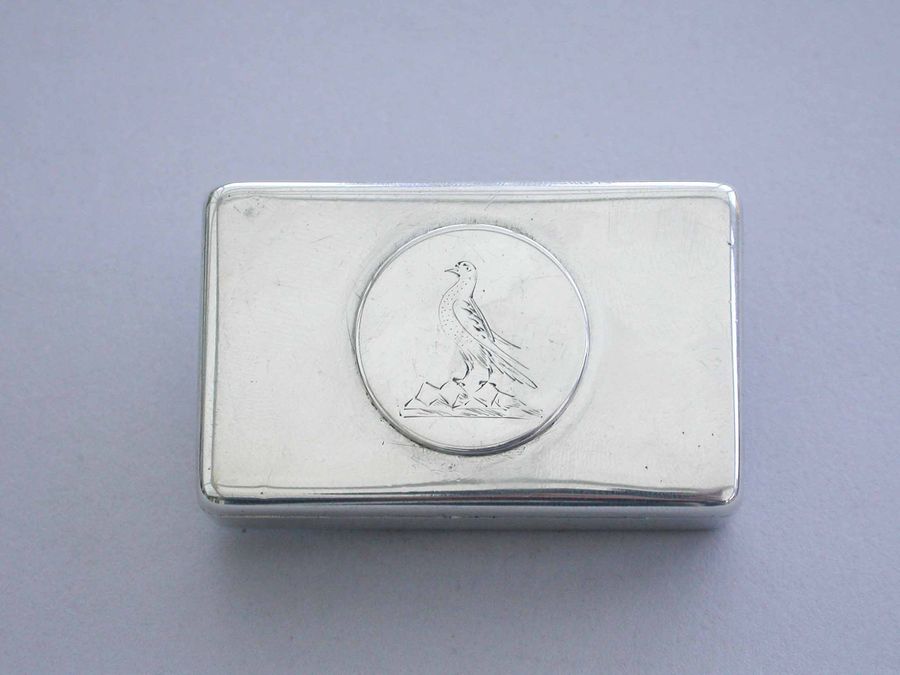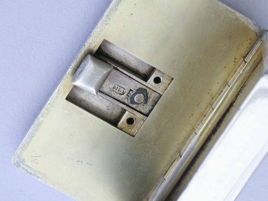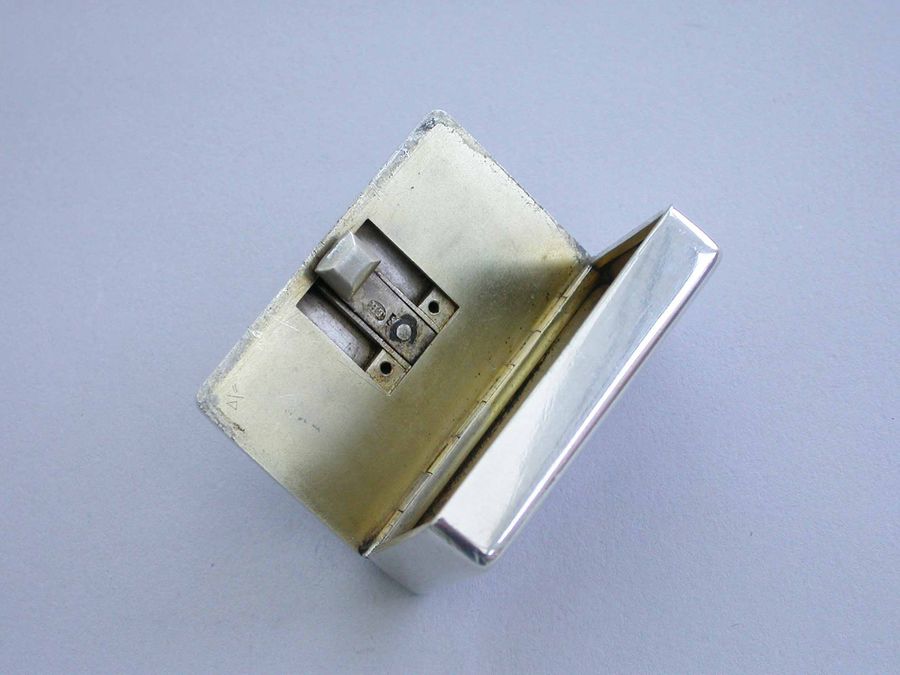 An unusual Victorian silver Trick Opening Vesta Case of rounded rectangular form, a circular plaque to the lid engraved with a crest of an heraldic bird. This can be slid upwards to release the sprung opening catch. Silver gilt interior and a recess to one side to hold the striker.