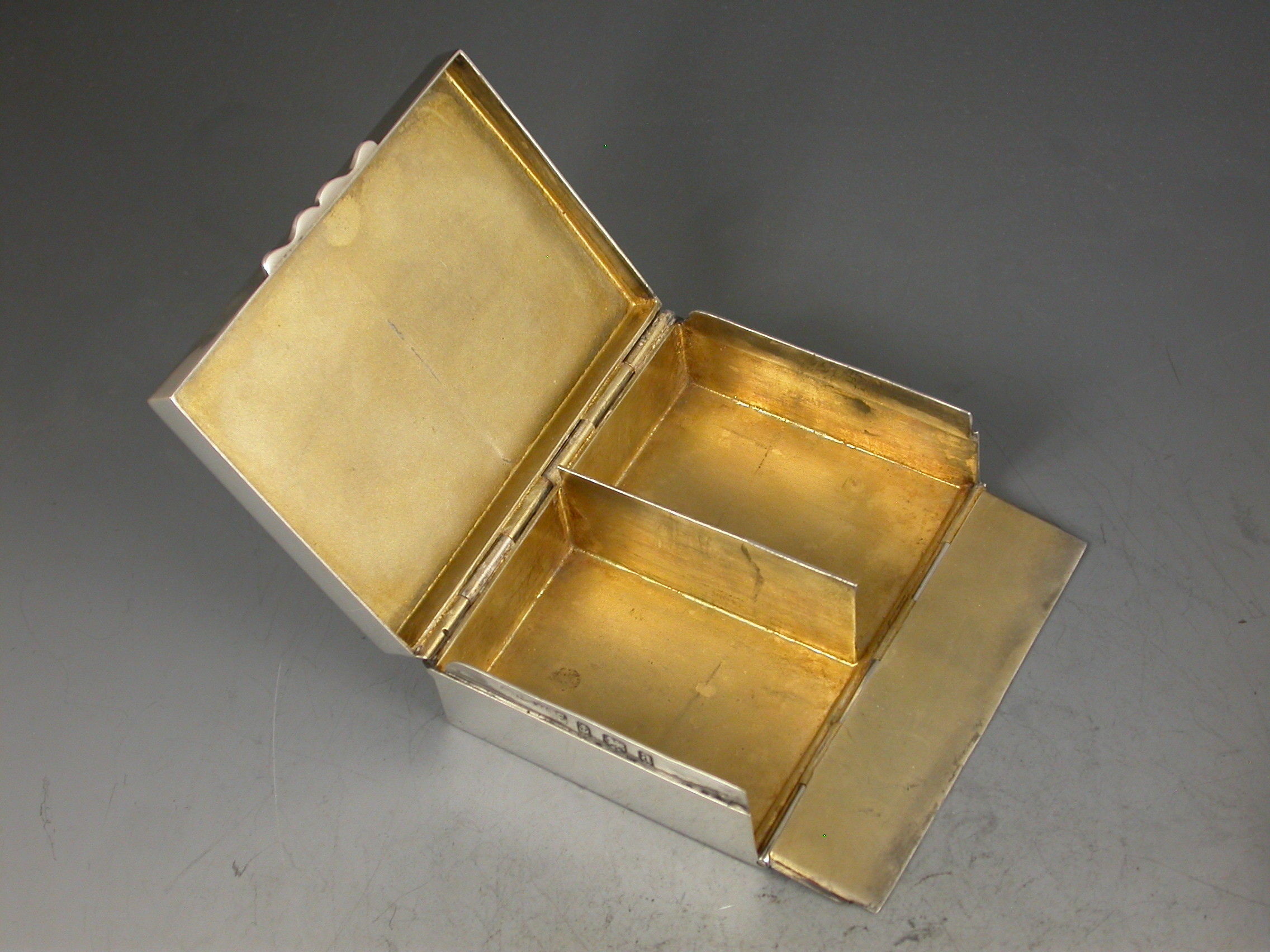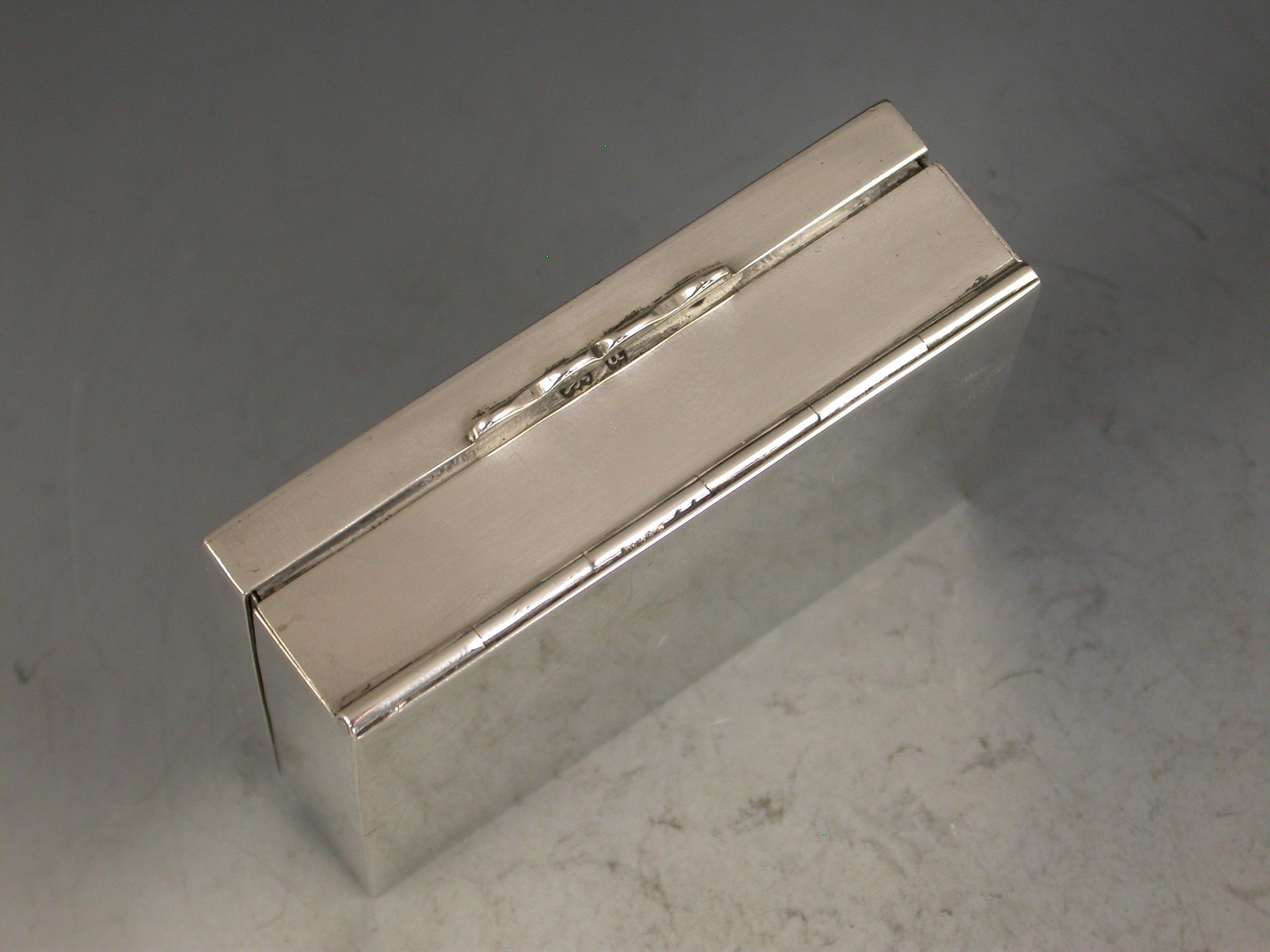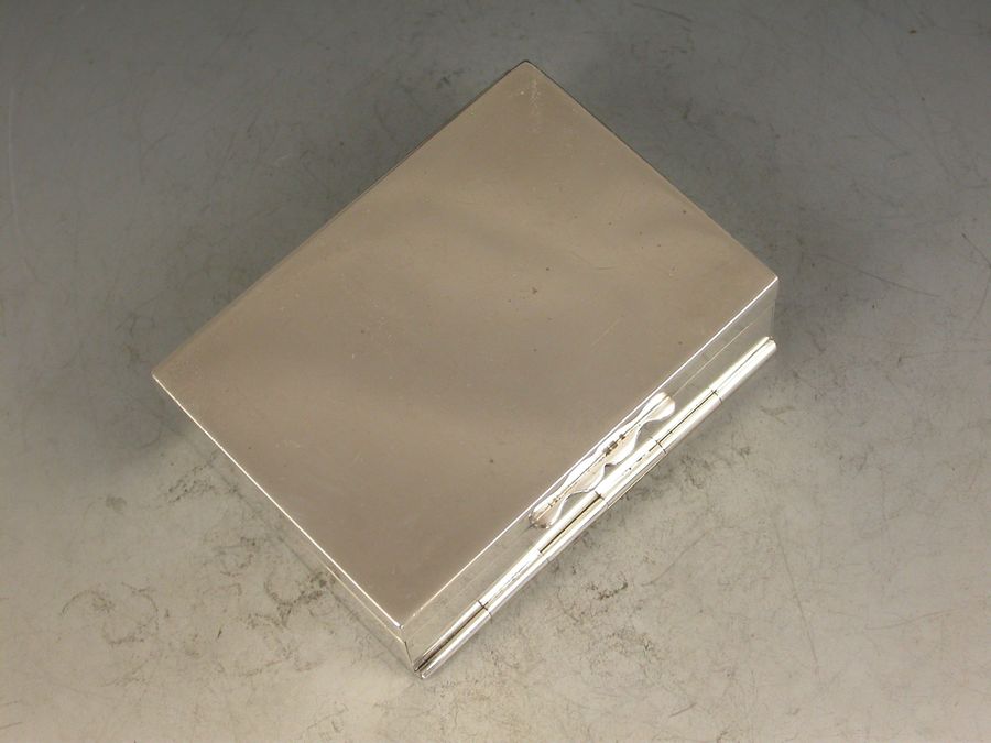 A good Victorian silver twin-pack miniature Playing Cards Box of plain oblong form with hinged cover and fall-down front, containing two packs of contemporary miniature playing cards the backs embossed with Nelson's Victory and Drake's Revenge, the ace of spades with Victorian Crown, Coat of Arms and motto.