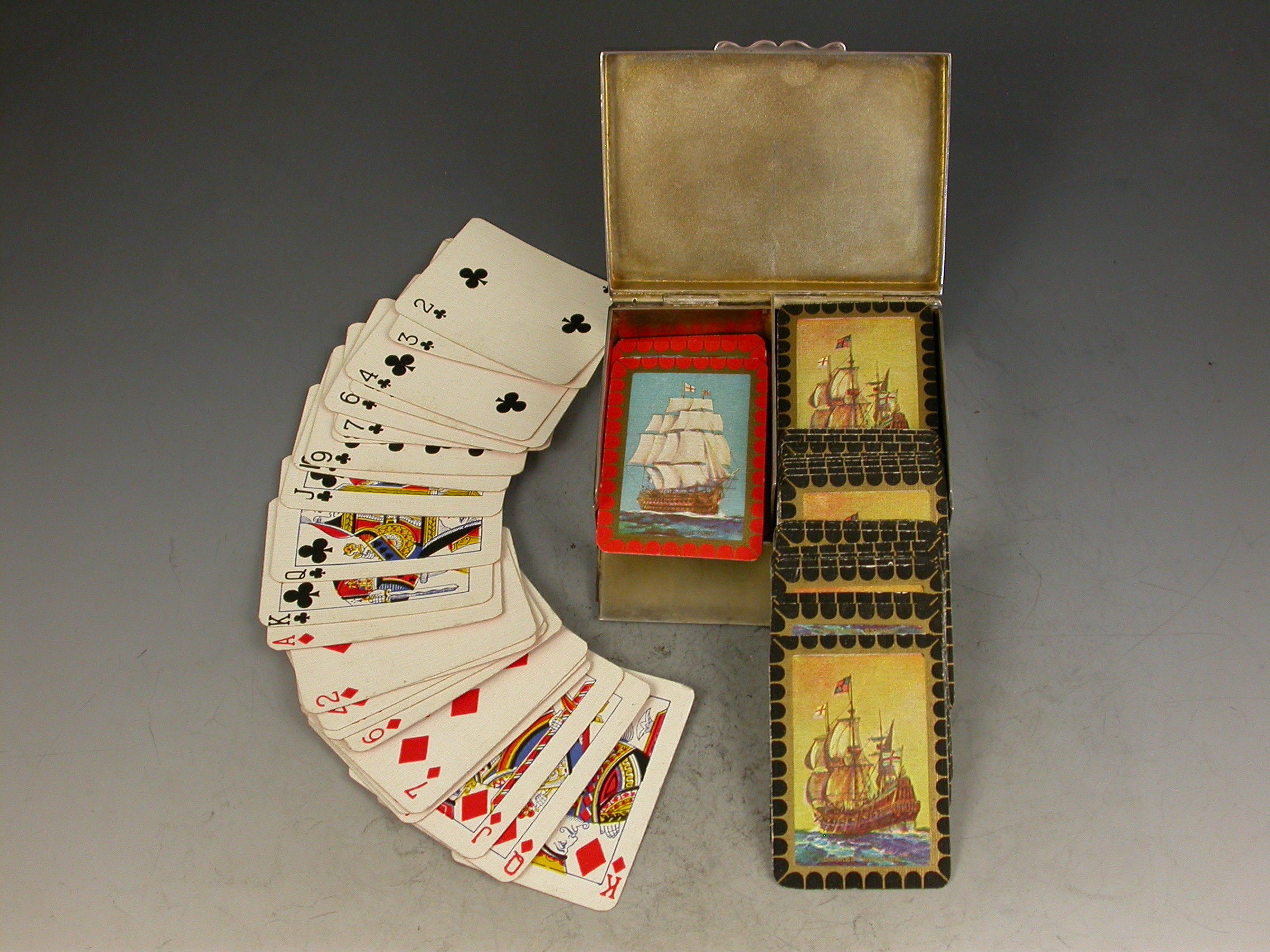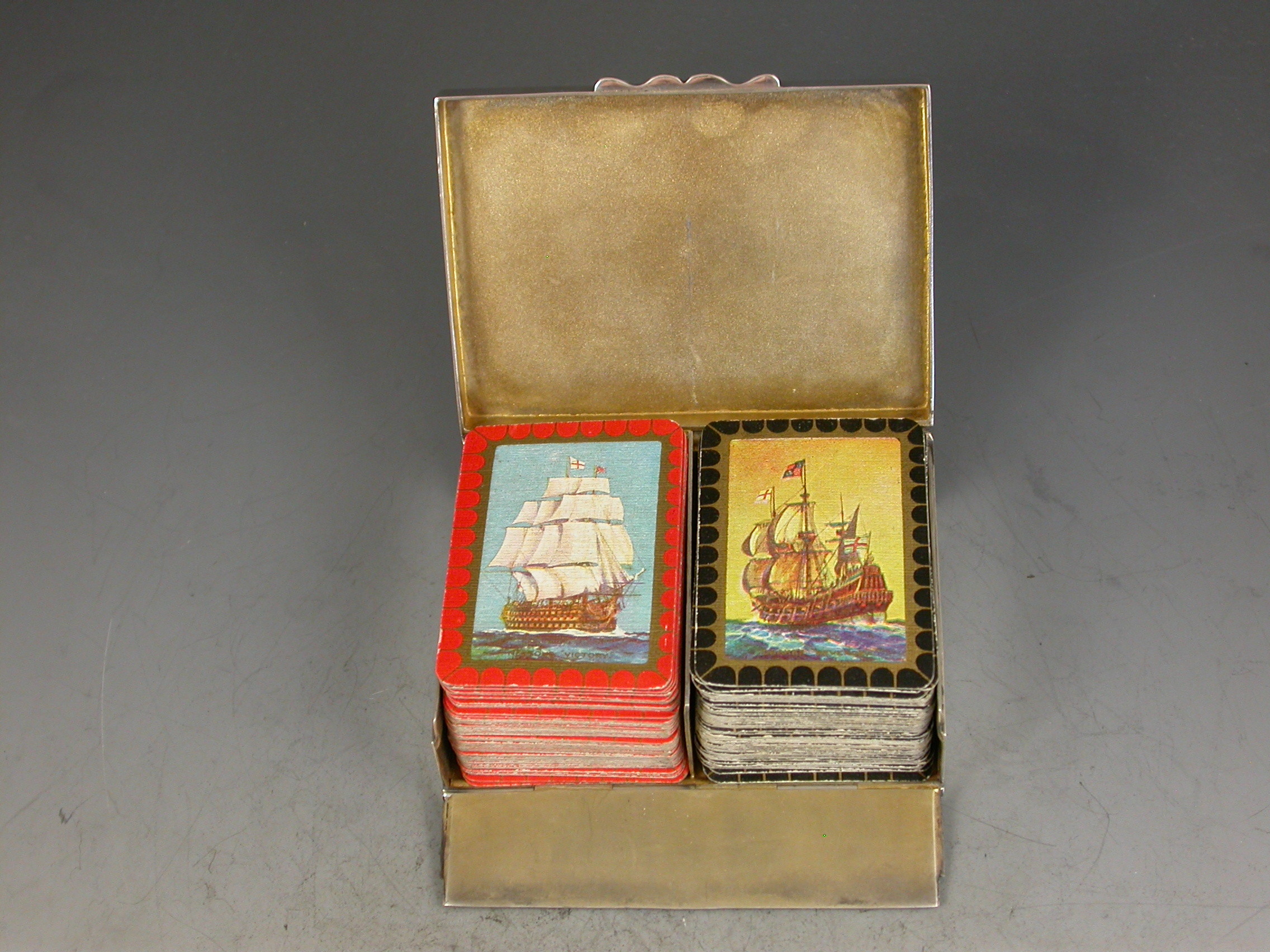 Victorian Silver Twin Pack Miniature Playing Cards Box 'Drakes Revenge & Nelsons Victory'