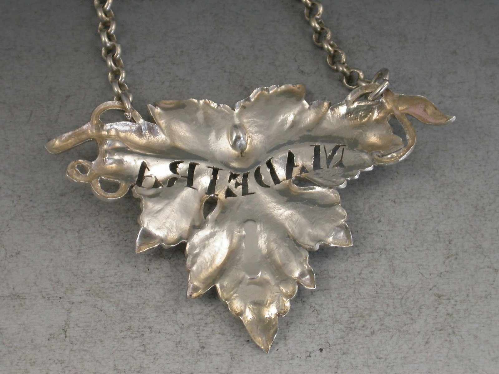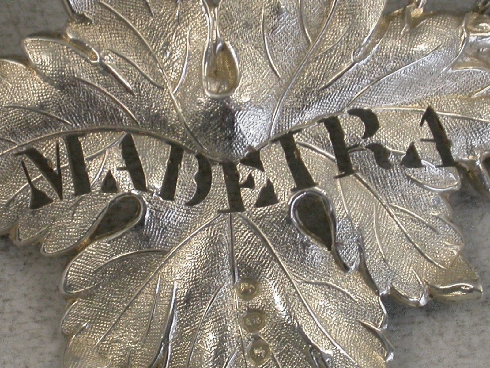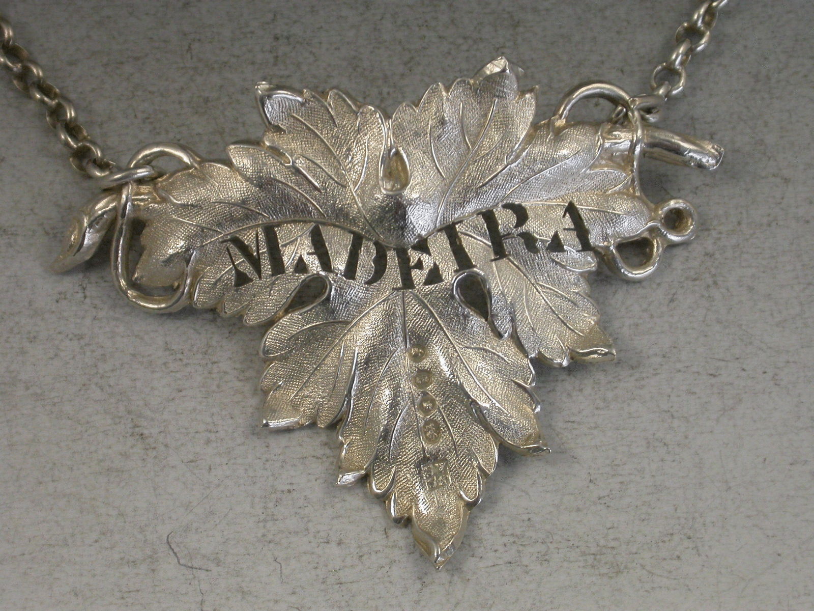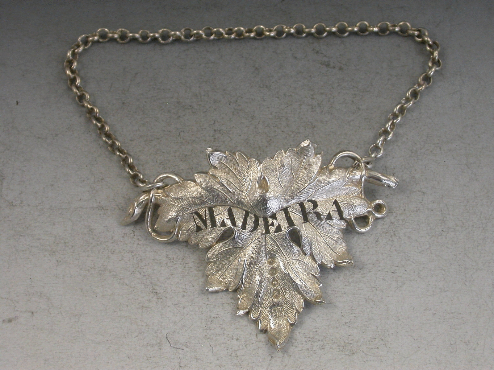 A Victorian silver Wine Label of single vine leaf form pierced for Madeira.