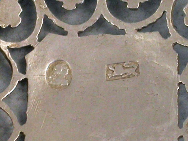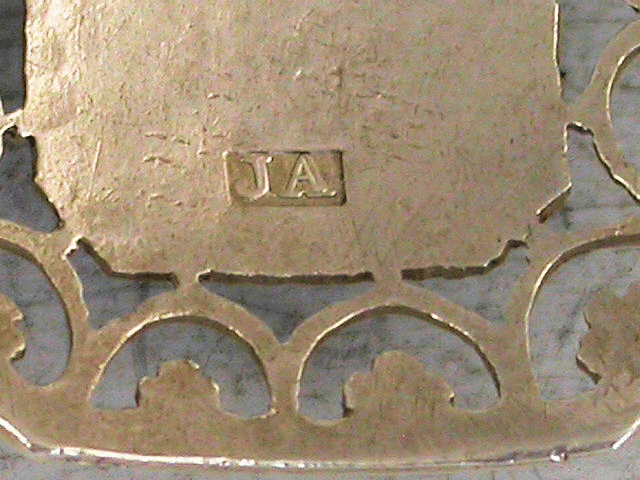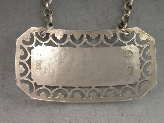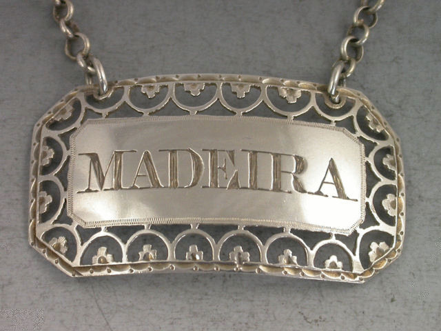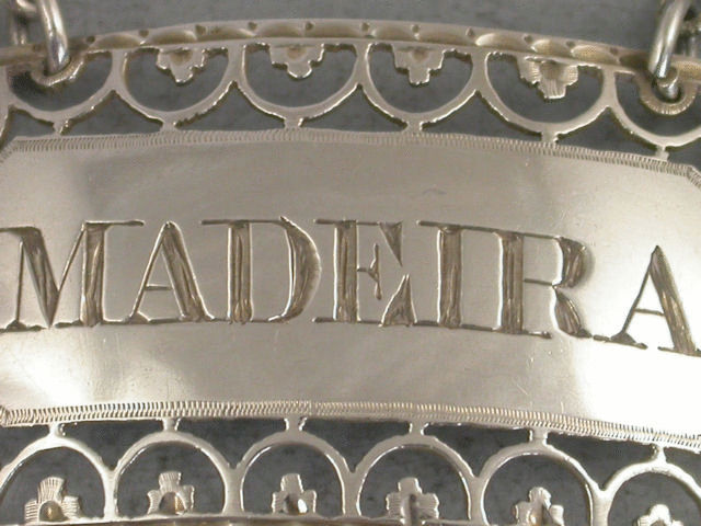 A fine and rare George III Provincial silver Wine Label of rectangular form with cut corners, the intricately pierced border of hoops and trefoils with bright cut engraved decoration, incised for MADEIRA.