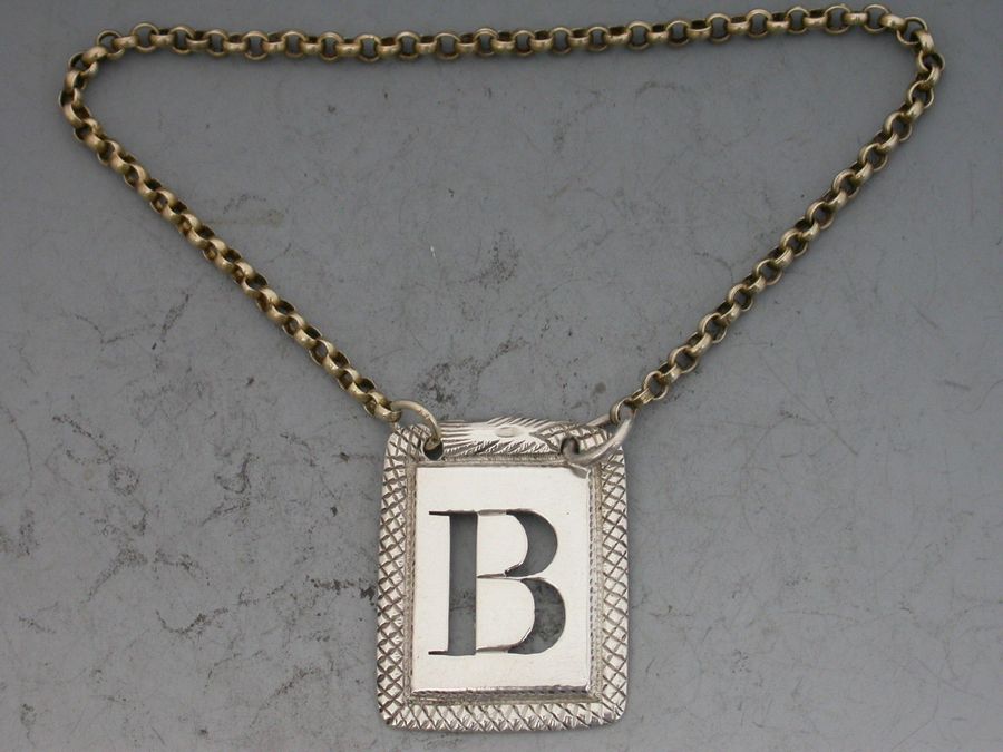 William IV Antique Silver Initial Letter 'B' Wine Label Ouroboros Border