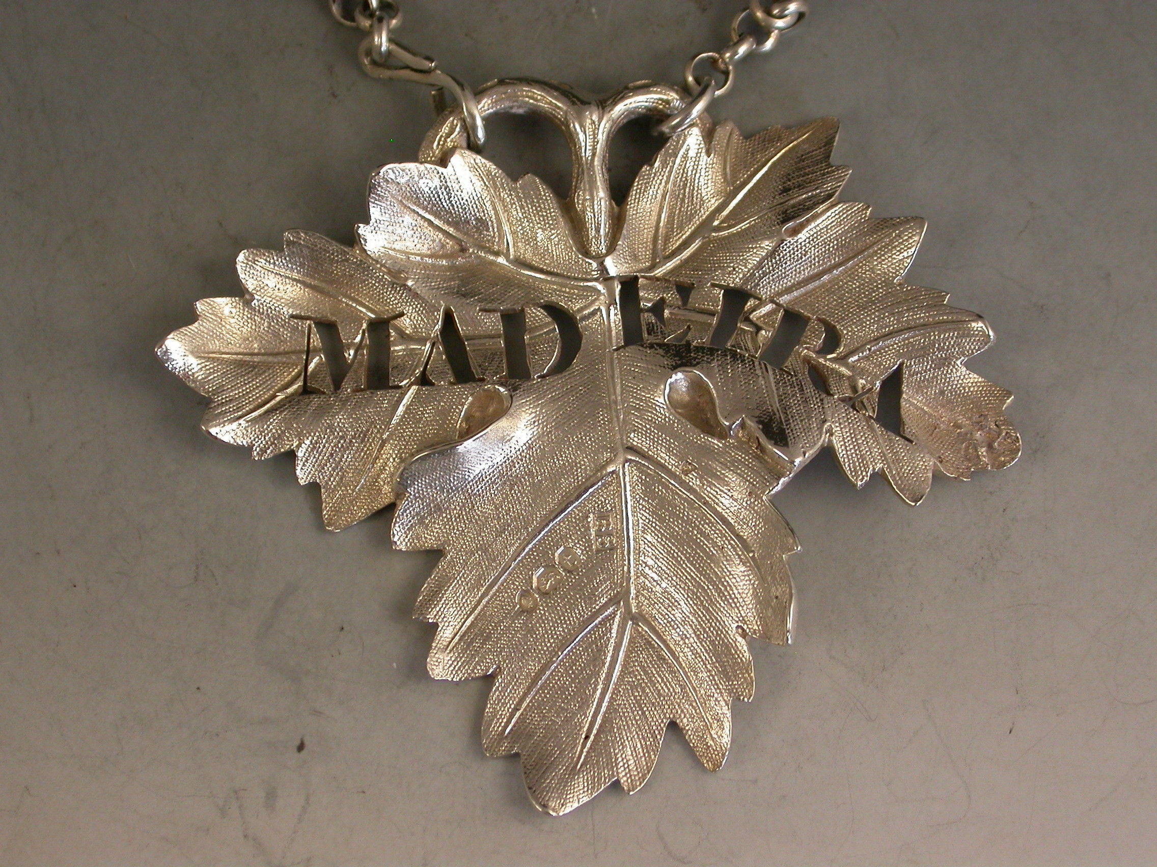 A good quality William IV heavy cast silver Wine Label of large vine leaf form, pierced for Madeira.