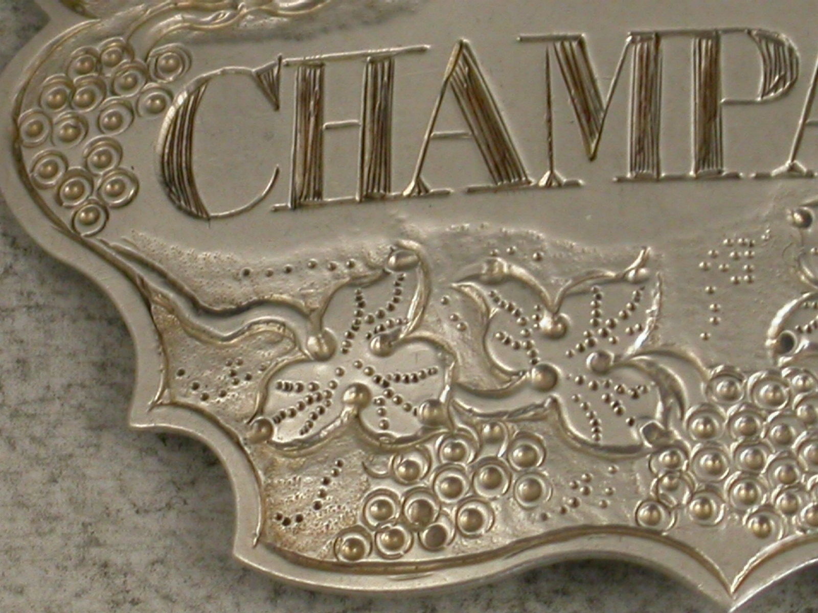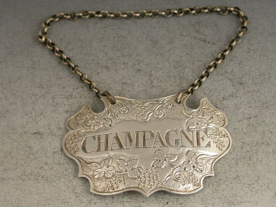 William IV Flat Chased Escutcheon Silver Wine Label 'Champagne'