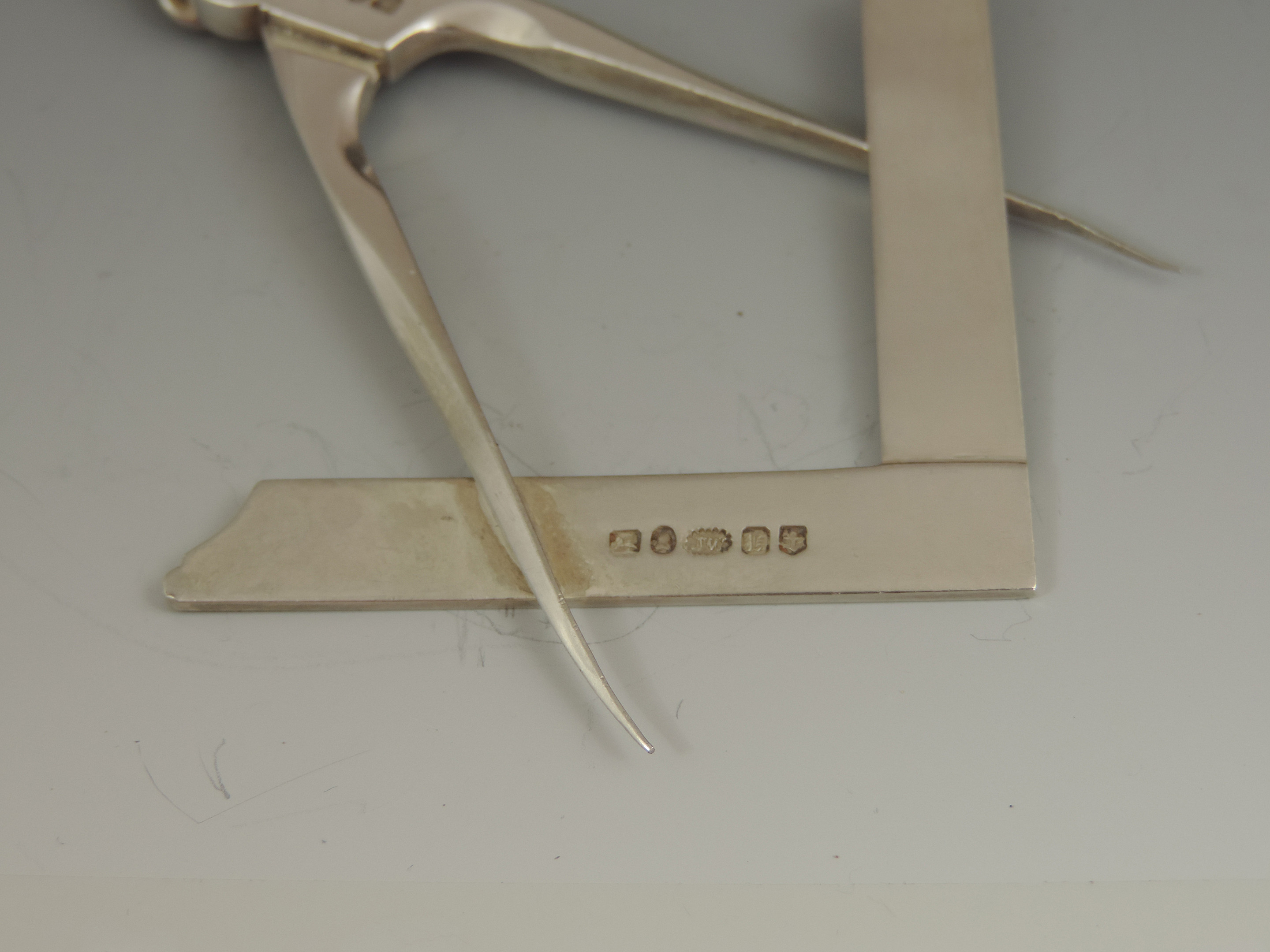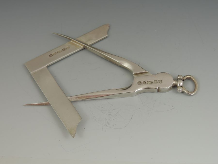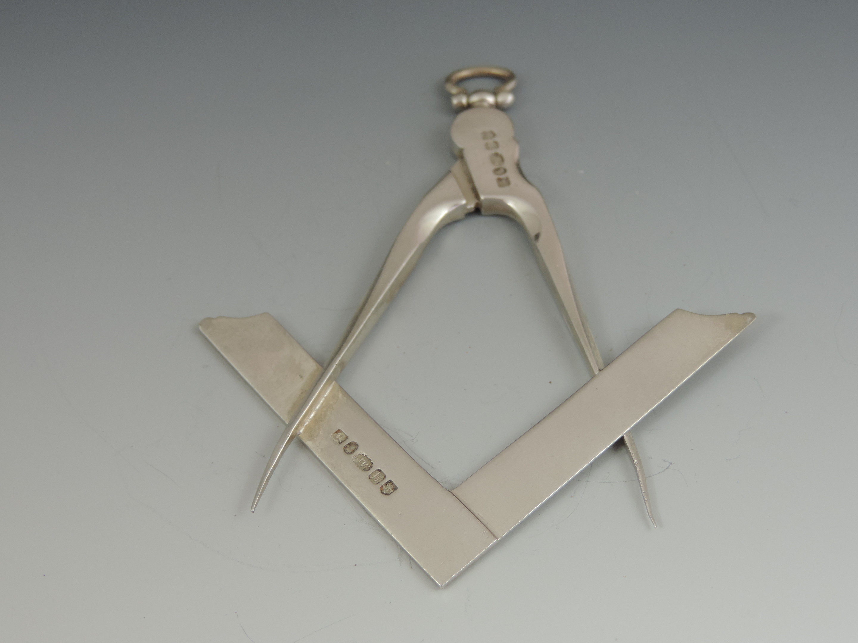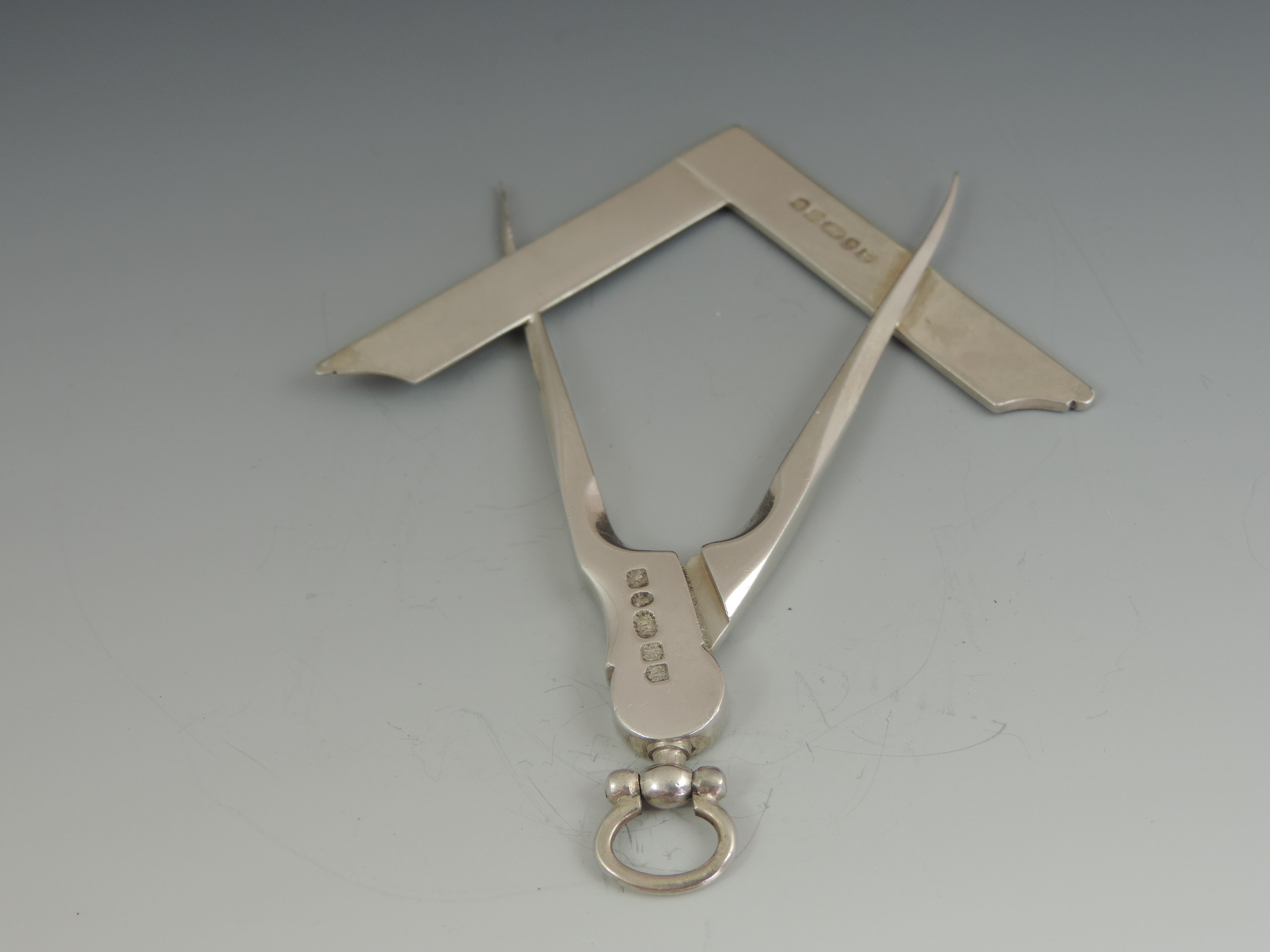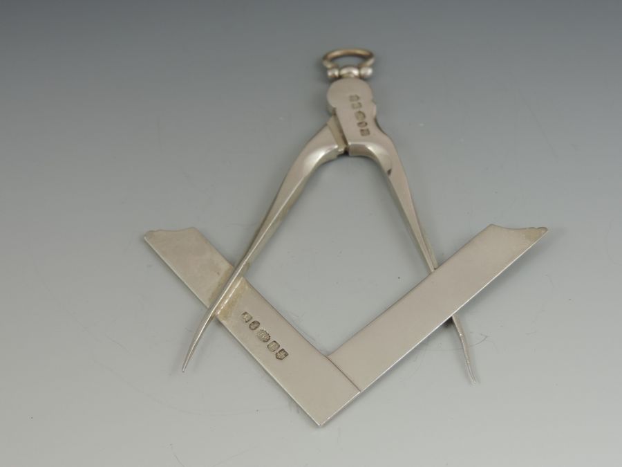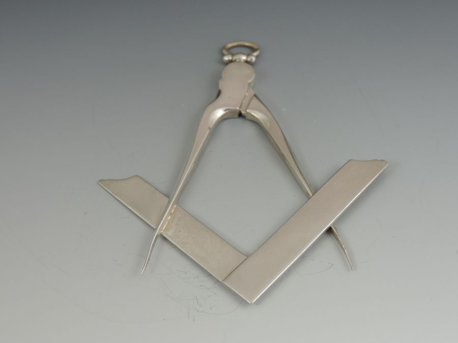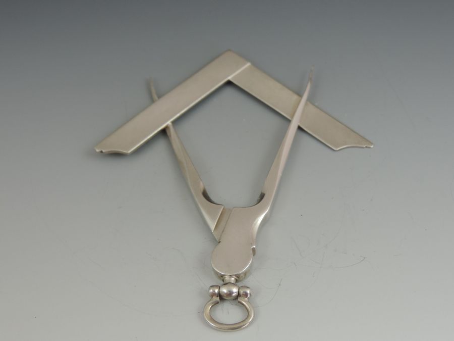 A William IV Masonic silver Set Square and Compass Collar Jewel with attached suspension stirrup.