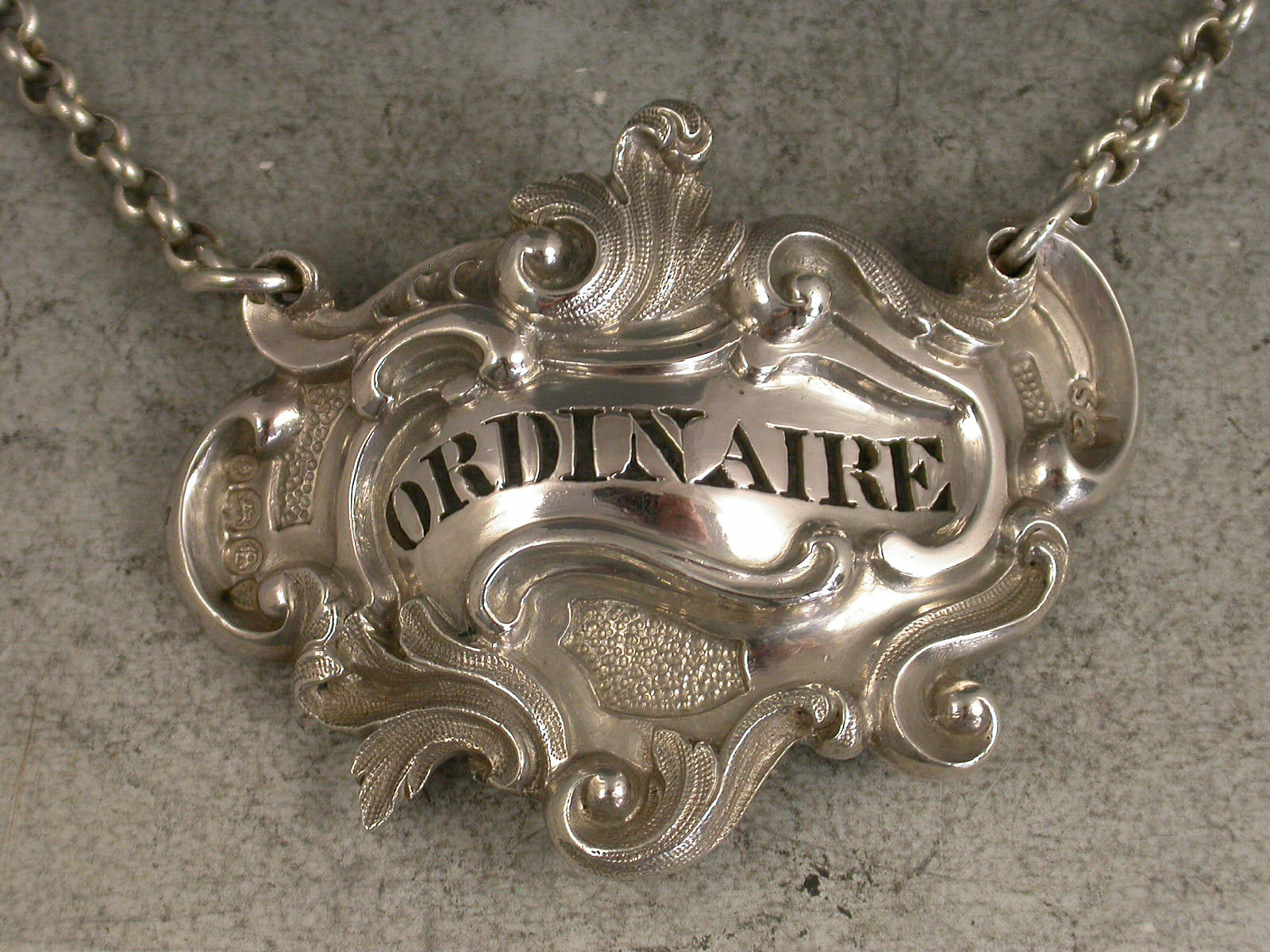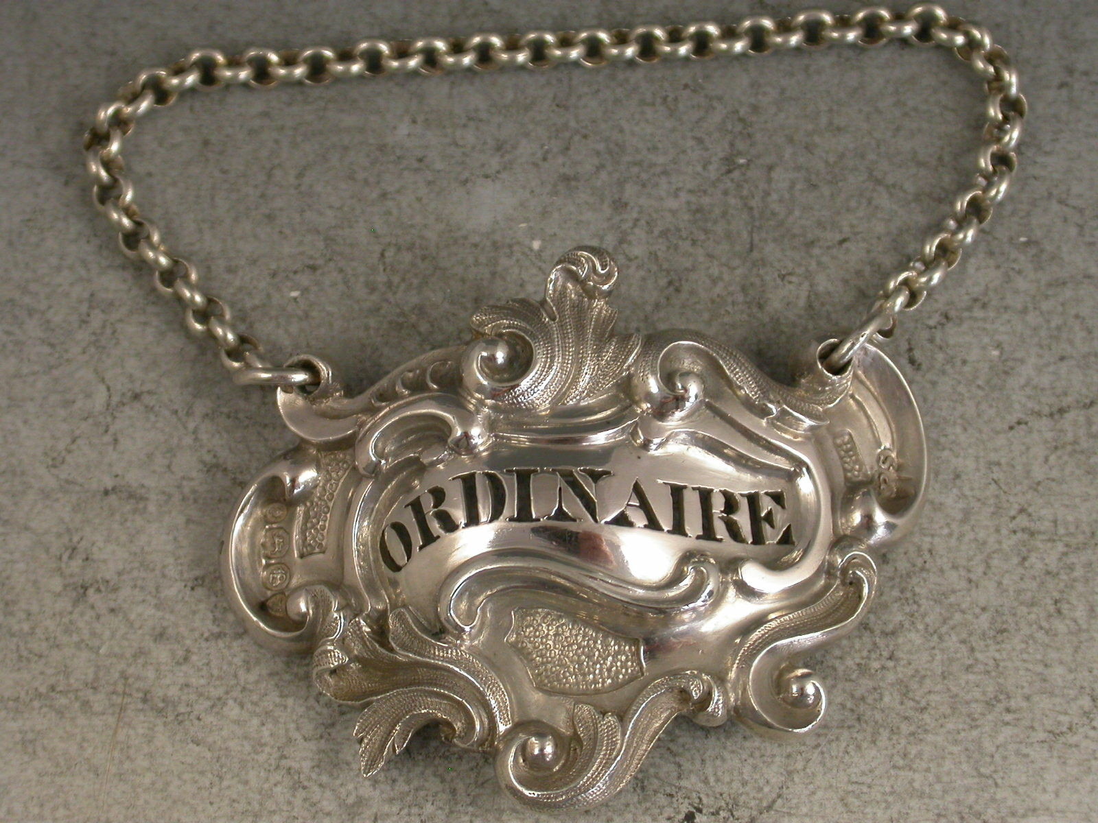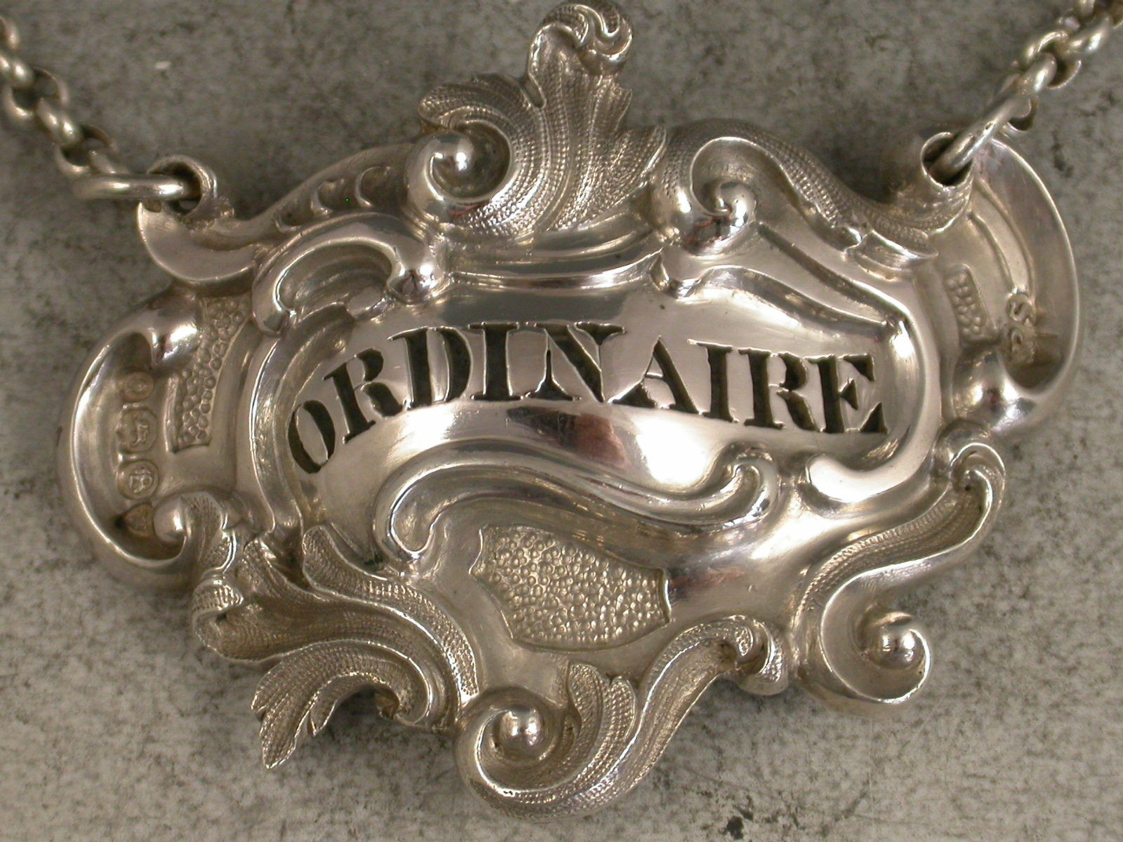 William IV Rococo Scroll Cartouche Wine Label 'Ordinaire'
