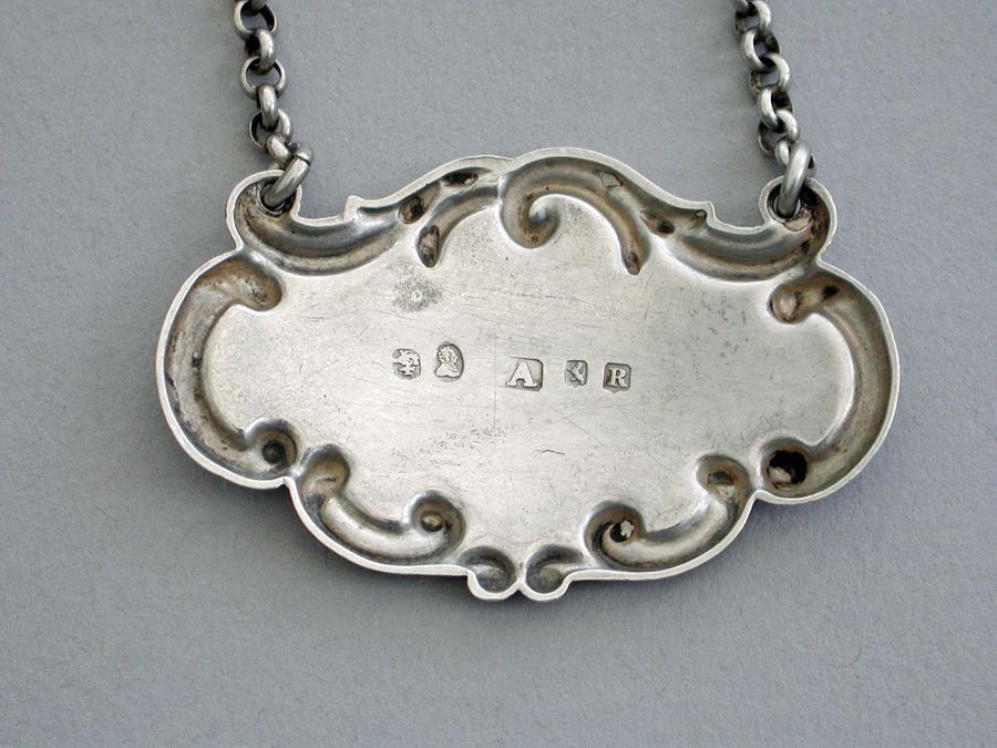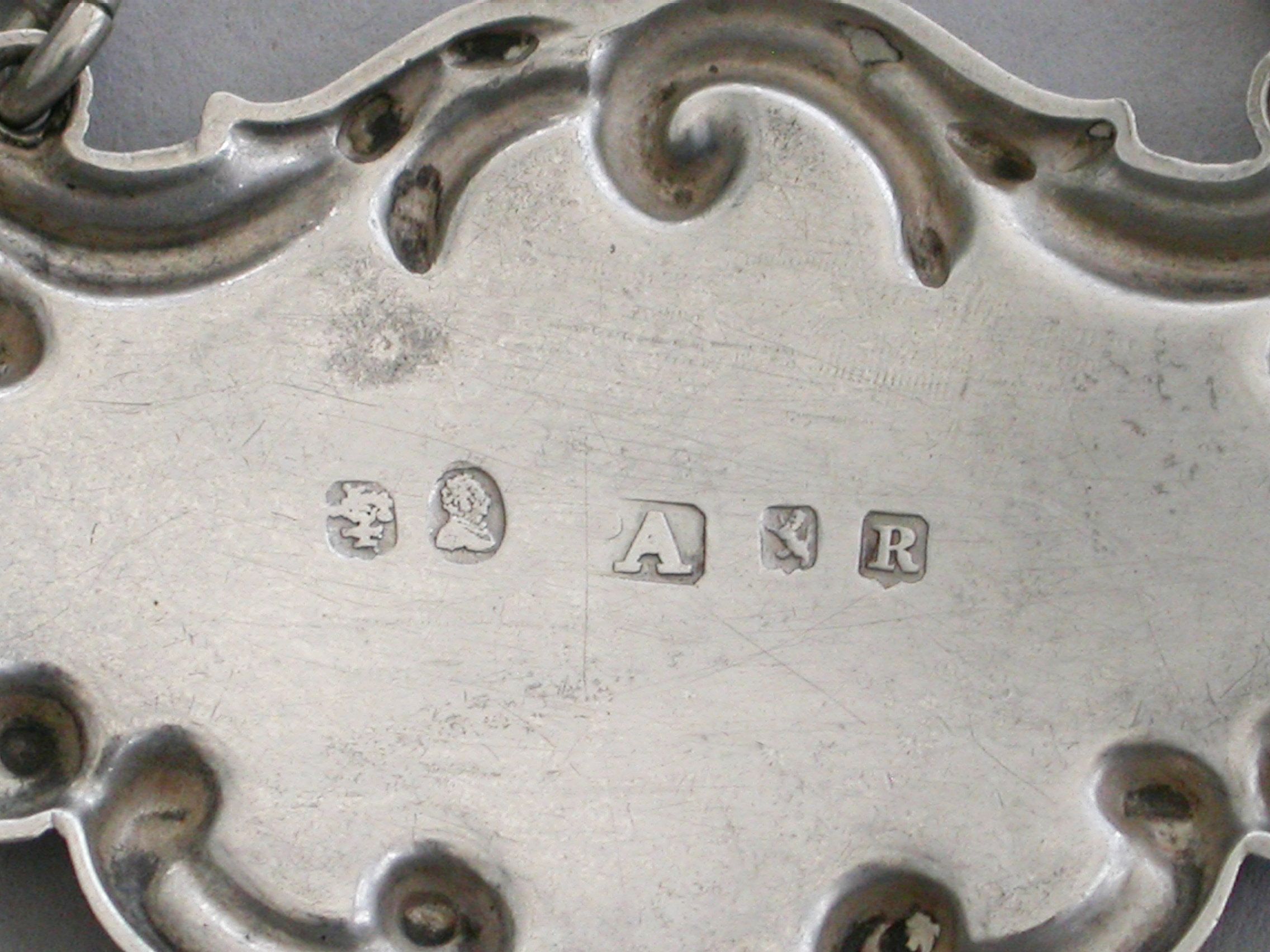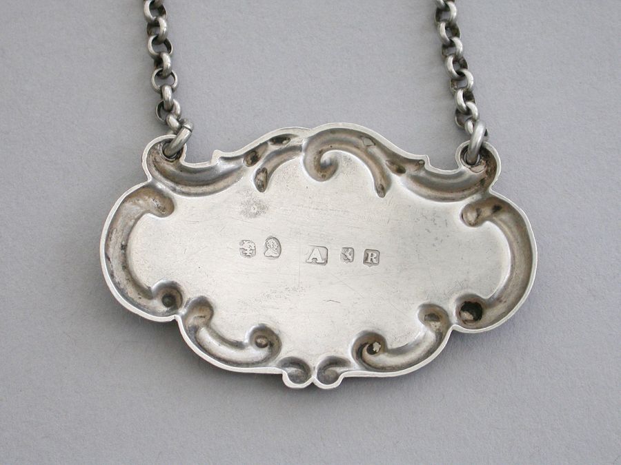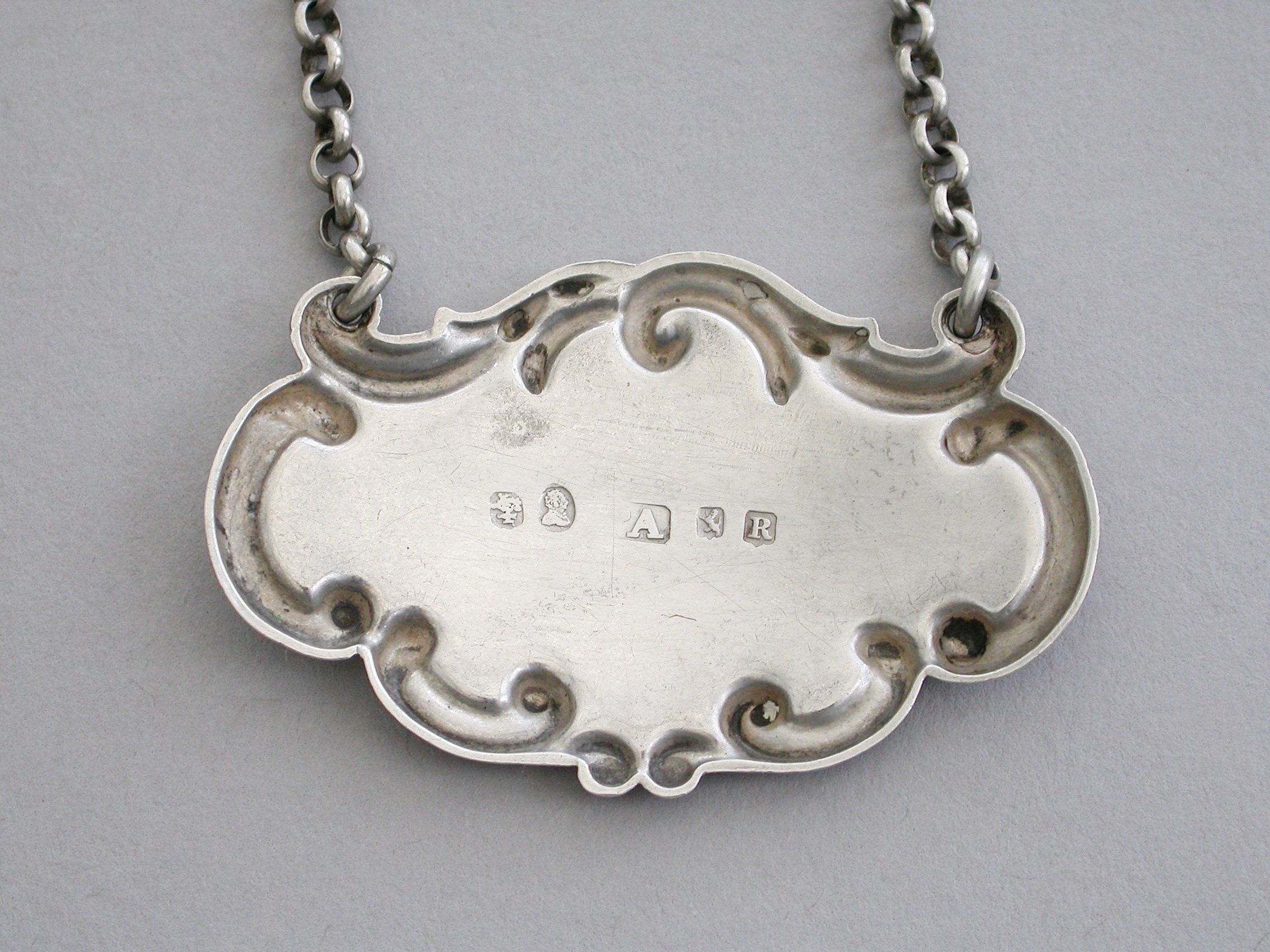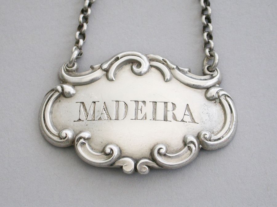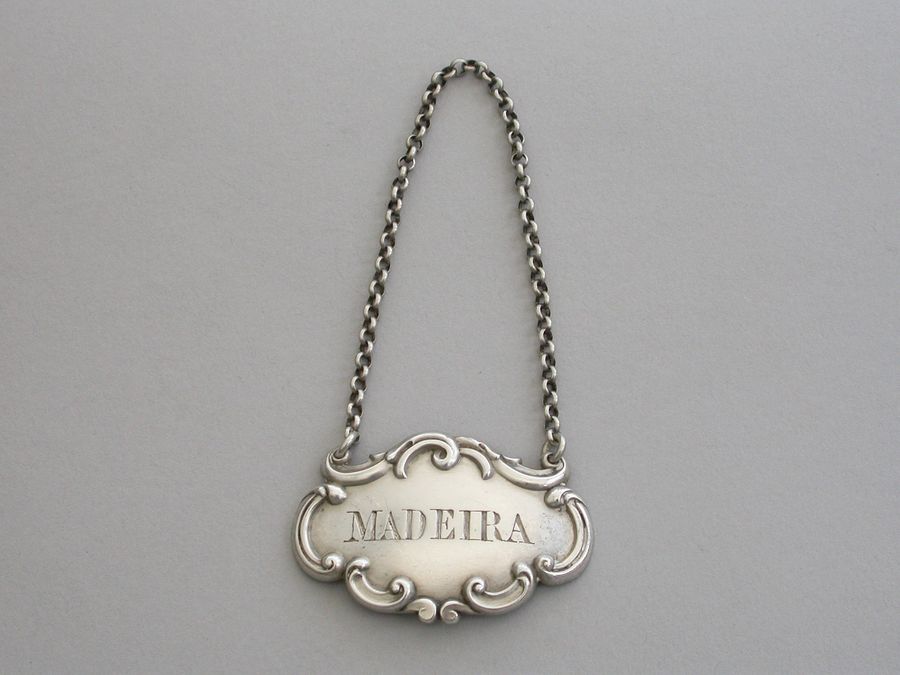 An unusual William IV Scottish silver Wine Label of shaped oval form with raised scrolled border, incised for Madeira.