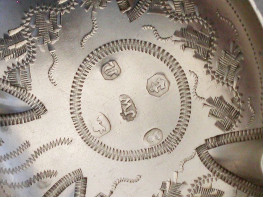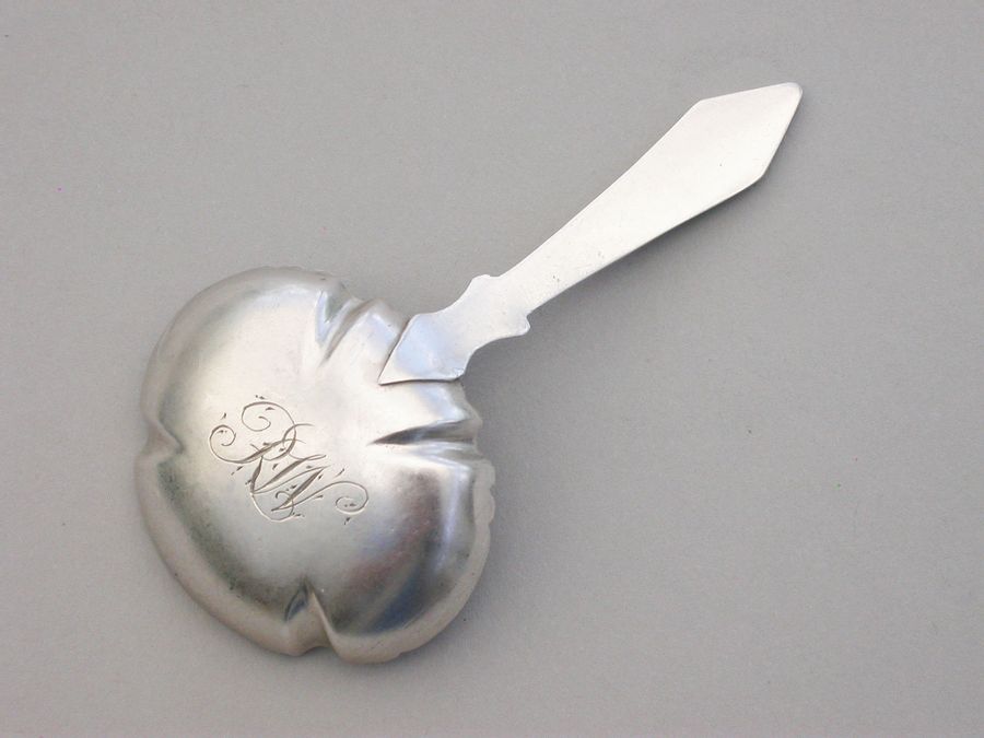 A rare and unusual William IV silver Caddy Spoon with shaped pleated bowl decorated with pricked designs and stylised foliate motifs. The unusual pointed handle embossed with a rose and oak leaves.