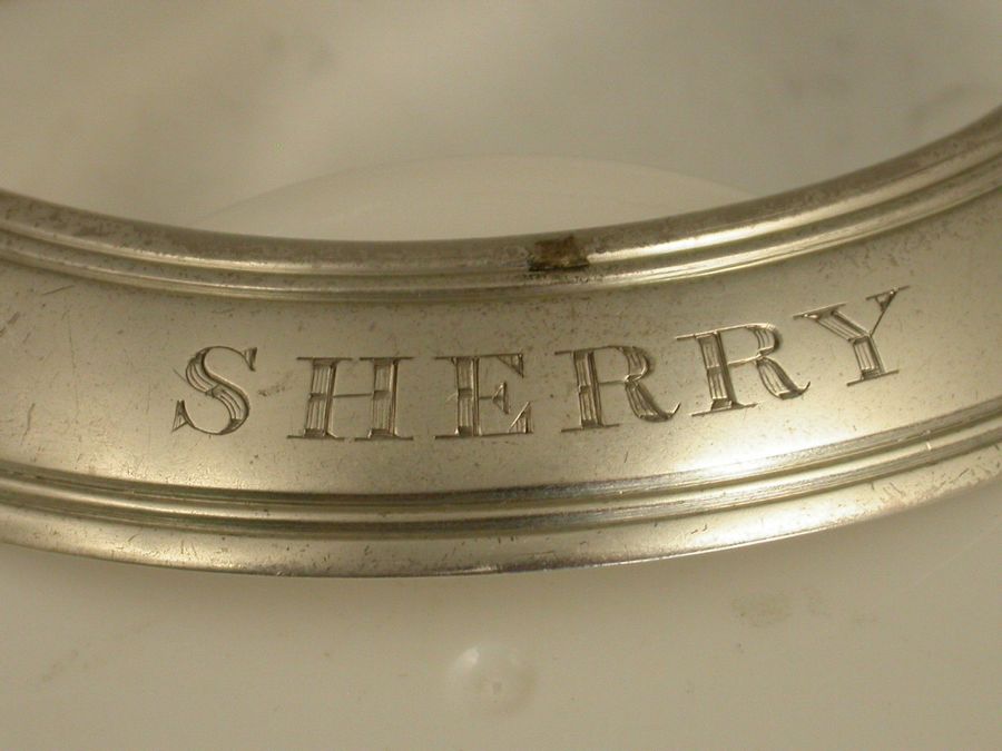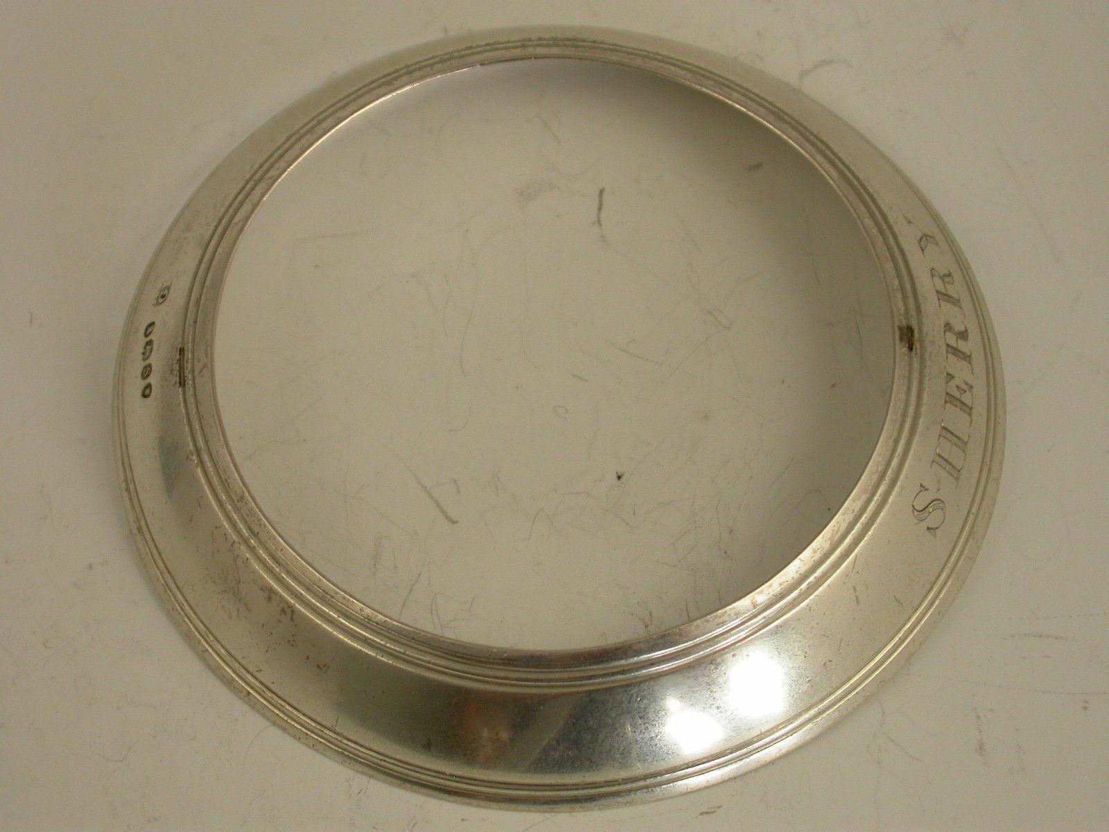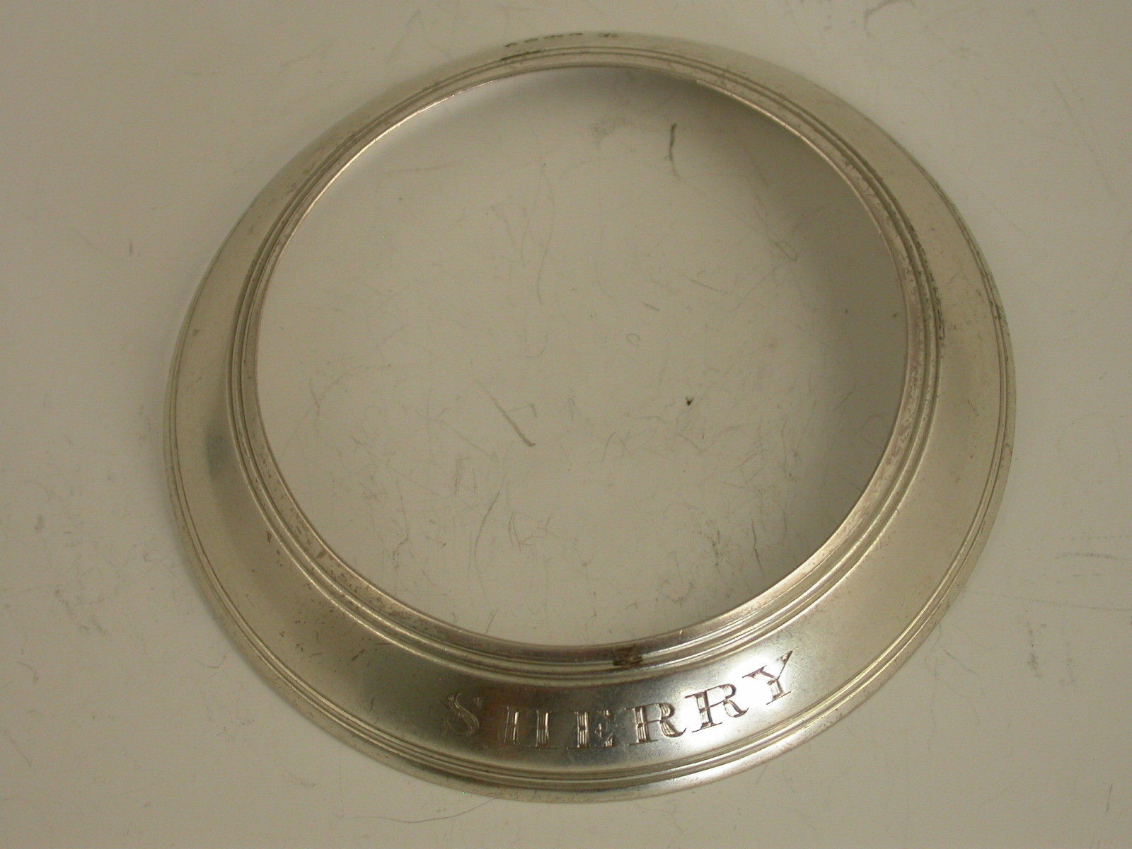 A good William IV silver Wine Label of large flared collar form with reeded borders, incised for Sherry.
