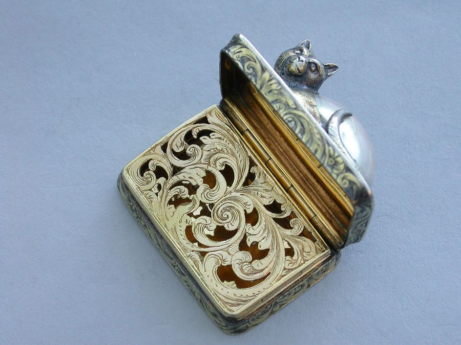 William IV Silver Gilt & Blister Pearl 'Cat' Vinaigrette
