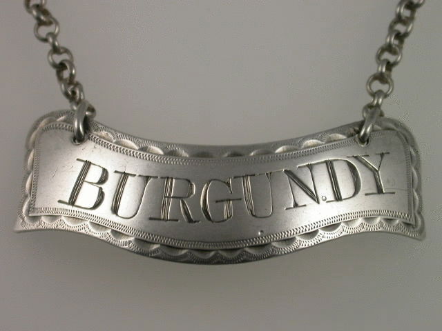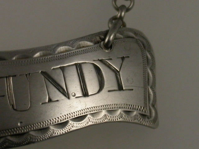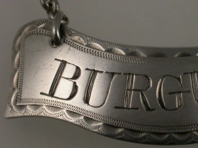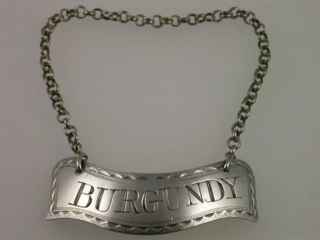 A very fine George III Irish silver Wine Label of curved banner shape with bright-cut feather edge border, incised for BURGUNDY.