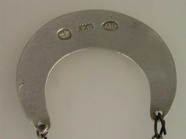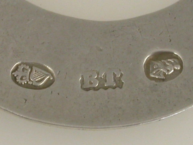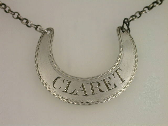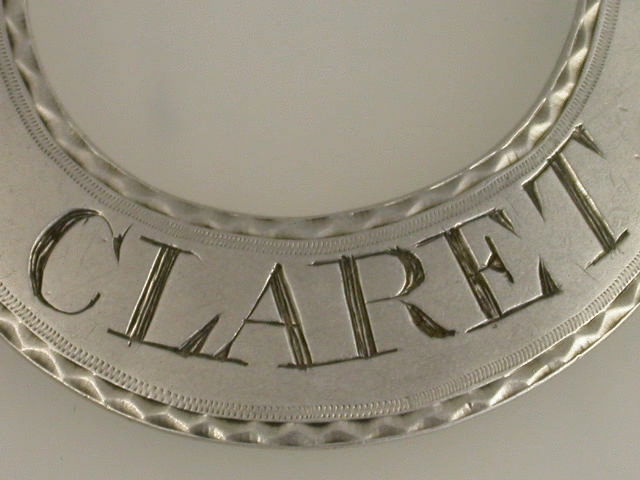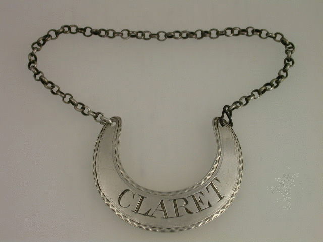 A good George III Irish silver Wine Label of rounded flat crescent form with bright cut engraved border, incised for CLARET.