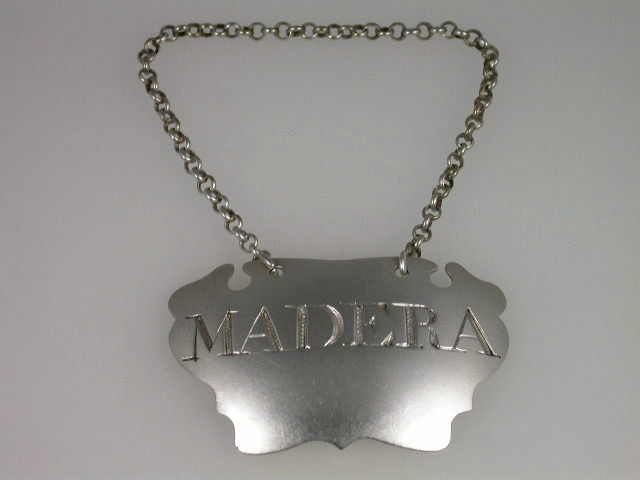 A rare 18th century silver Wine Label of plain escutcheon form, incised with unusual cross hatched engraving for MADERA. This miss spelling of Madeira is often noted on the earliest Wine Labels from the mid 18th century.