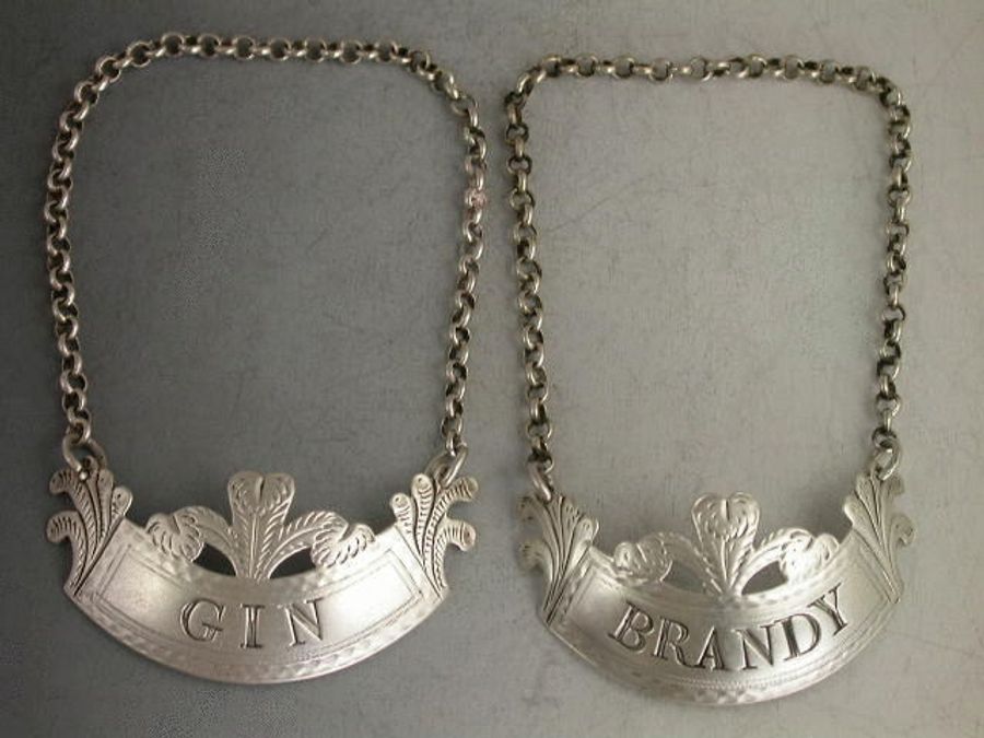 Pair Prince Of Wales Feathers Wine Labels Gin & Brandy