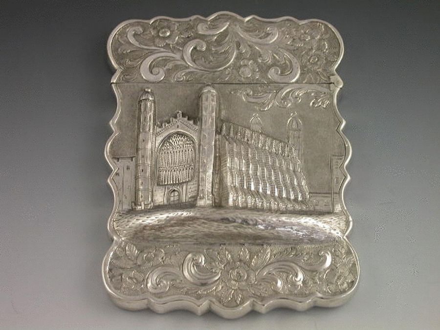 Victorian Antique Silver 'Castle-Top' Card Case Kings College Cambridge